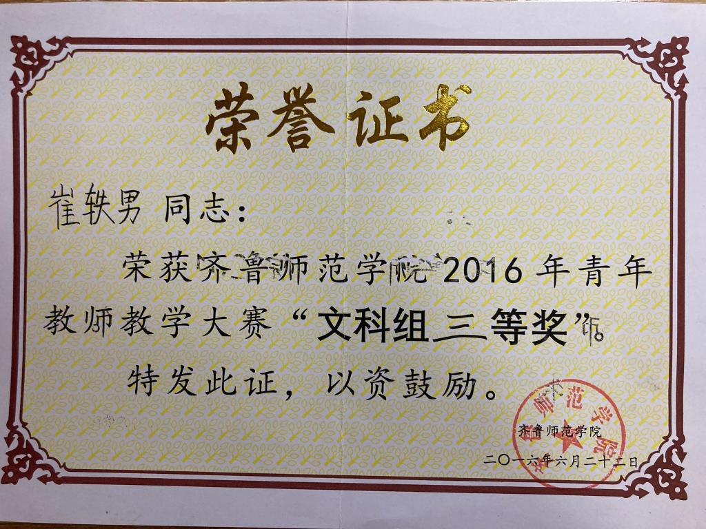 崔轶男老师荣获齐鲁师范学院2016年青年教师教学大赛三等奖