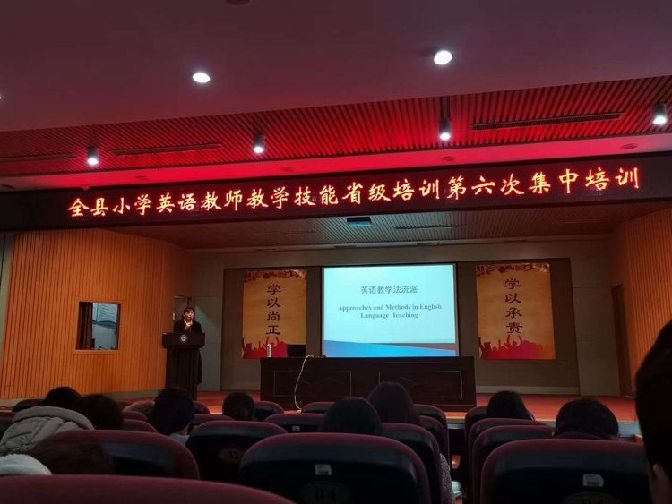 12月7日五莲县英语教师教学技能省级培训第六次集中培训在实验学校举行。齐鲁师范学院董苗苗老师担任本次培训的讲师,全县所有小学,初中英语教师参加本次培训活动。