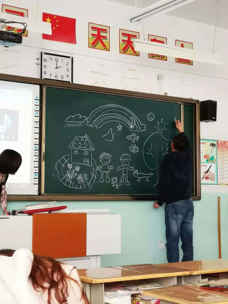 常老师还结合课本分享了许多有趣的绘本、童谣,不仅要演出来,还可以画出来,班长王小龙老师就在绘本音频的指导下,现场作画,赢得了阵阵掌声。