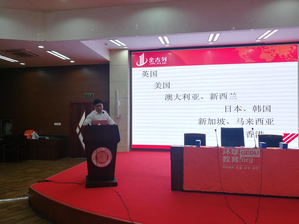 首先,陈划磊老师讲述了为什么要留学——跟随名人的足记去留学,还从学习、住宿等方面介绍了留学国家,以及出国留学需要的准备,并介绍了金吉列留学的详细情况。袁总监从听力、阅读、写作、口语四个方面讲解了如何备考雅思,又从为什么和如何两个方面让我们了解了雅思考试,并简单介绍了一下环球雅思的入学流程。随后牛书记讲明了这次讲座的目的是为了让同学们明确目标,并以幽默的方式介绍了考研、出国和雅思的重要性让大家明白了就业的严峻性以及英语专业所要面对的挑战与所要做的准备,并且鼓励了大家。最后Rosemary举例说明了雅思的重要性,她说考研并不是唯一的出路,还为大家带来了福利。报告会过程中,Rosemary幽默的谈吐与渊博的学识不时引来大家的欢笑与掌声。此次在大家的热烈掌声中圆满结束了。