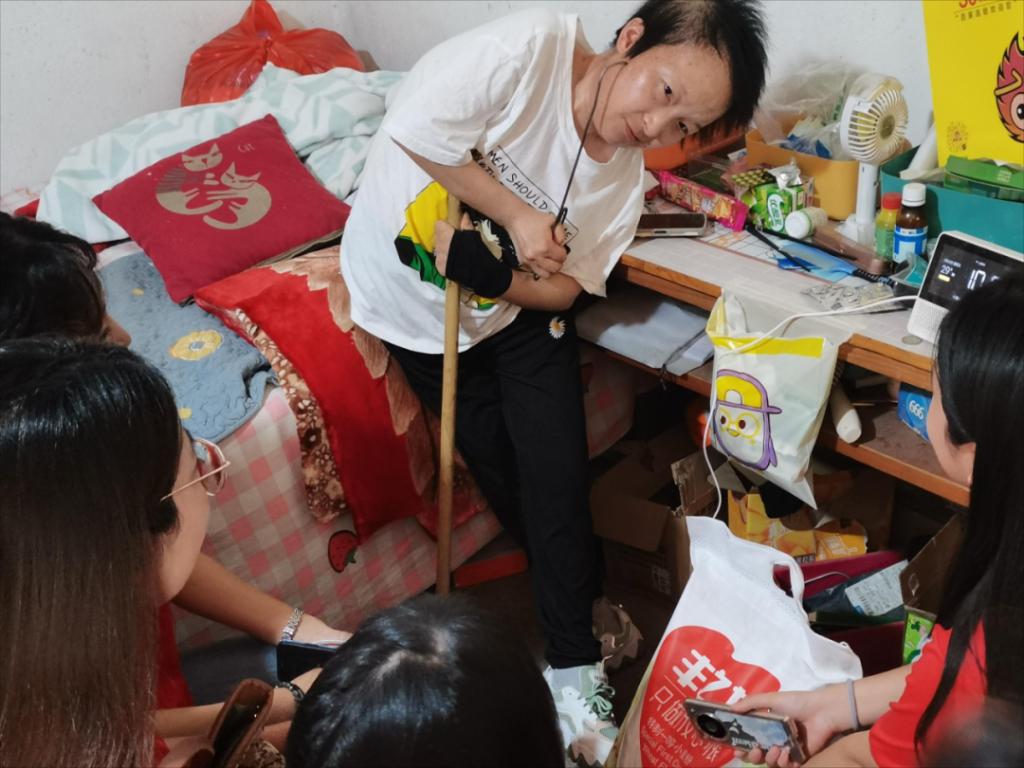 服务队来到前焦邱村民敏敏家,据了解敏敏六岁时患病,母亲去世,当地政府为他们修缮了房屋。由于残疾,生活不便,主要靠老父亲务农和当地政府的救助来维持生计。活动中,志愿者们为敏敏精心准备了慰问品,并帮助她打扫卫生、整理家务,最后一起为她现场演唱了暖心的励志歌曲,鼓励她坚强面对生活。