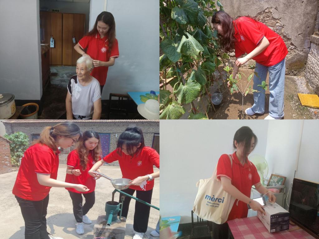 志愿服务队的同学们事先准备了一些生活慰问品,为老人们送去了外国语学院广大学生对村里老人们的一份心意;为老奶奶梳头,整理房间,浇灌菜地,做一些力所能及的家务;志愿者们发挥自己的专业特长,给老人家现场演唱了英文歌曲,用歌声表达了外国语学院学生们对老人的祝福。村里的爷爷奶奶和志愿者们促膝长谈,气氛温馨感人,感染着每一个人。