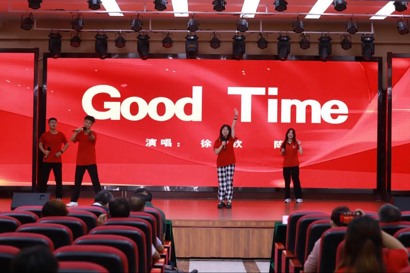 社区文艺汇演在我院服务队欢快的《New Boy》中拉开了序幕。歌中唱到“在成长的旅途中,我们总会遇见许多风雨泥泞。在学习和生活中,学会保持愉悦的心情,用灿烂的笑容打败挫折,你就会发现阳光可爱,万物明朗”。这首歌曲充分展现了当代大学生积极向上的生活态度。歌曲《Good Time》带动全场欢乐氛围,活动现场气氛热烈,我院的队员们将这首耳熟能详的英文歌以最完美的状态呈现在观众眼前,给在场的观众留下来深刻的印象。