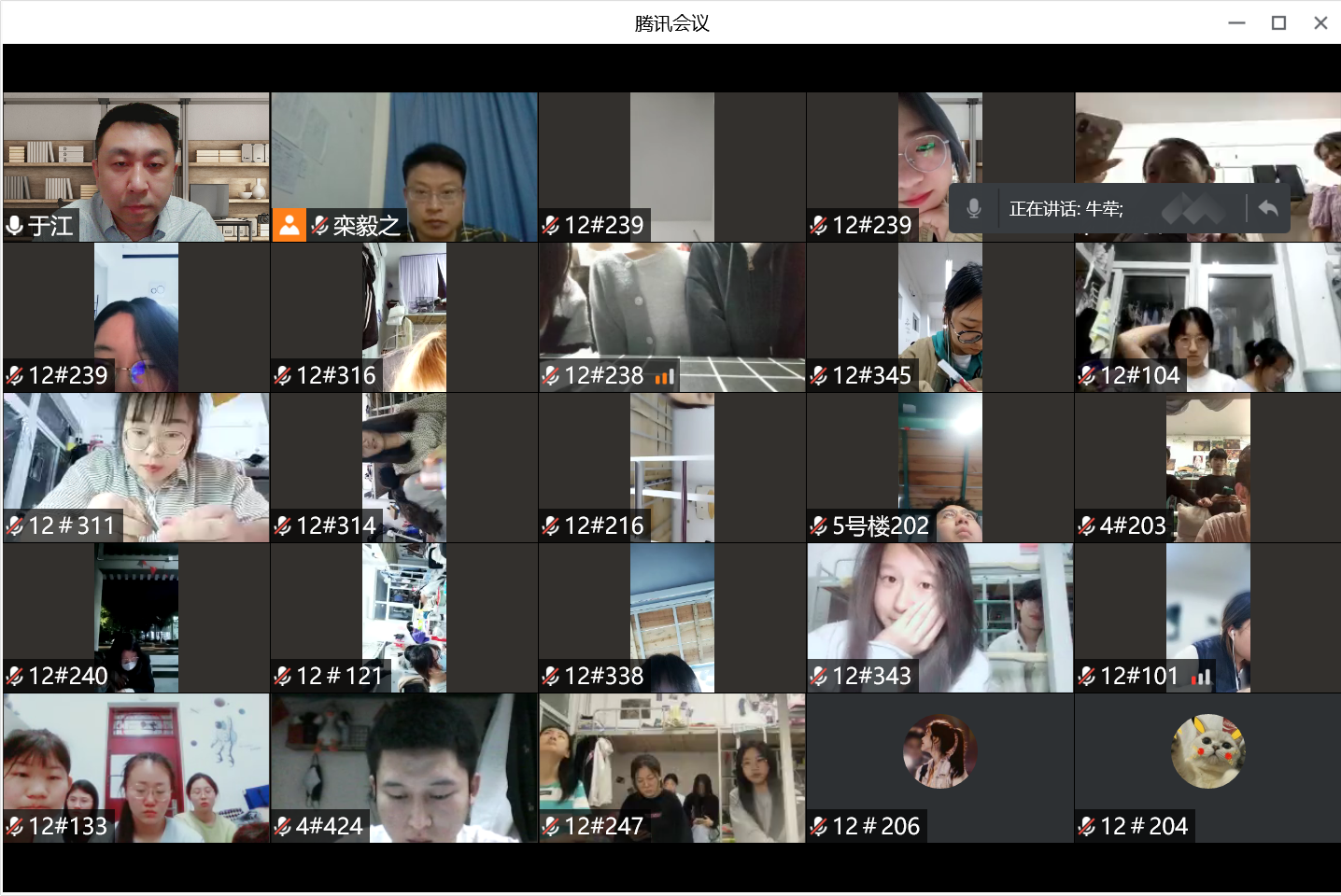 会上,党委书记于江强调指出,随着全国疫情持续不断,尤其是济南当地疫情的严峻形势,学校防控工作出现了新的风险点,疫情防控工作依旧压力大,全体学生不能有丝毫的盲目乐观情绪或歇歇劲、松口气的想法,大家要时刻保持高度的警戒,绷紧严防死守这根弦,毫不放松疫情防控工作。学院全体学生要在当前这个特殊时期,做到“疫情防控”和“学习生活”两手抓两不误,具体是要做到“三严”、“三实”。“三严”指一是严格落实常态化疫情防控各项措施,警惕和审视是否存在麻痹思想、厌战情绪、侥幸心理、松劲心态,进而坚持不懈、不折不扣的继续严格执行学校常态化疫情防控的有关措施;二是严格执行学院有关疫情防控的管理举措,学院针对日常核酸检测和每日查寝等重点环节,在前期工作基础上摸索出了行之有效的管理办法,同学们要继续一以贯之的抓好落实,不能有任何的松懈怠慢;三是严格处理各类违反学校防疫规定的各类违纪行为,学院学生若出现有关违反疫情防控的违纪行为,学院将严肃处理,顶格处罚,绝不姑息。“三实”即一是做到学院各类疫情防控手段要实,在现有学院执行的具体防控措施基础上,继续加大诸如查寝工作频次和力度,采取学生在校动态监测等措施,出更实更严的办法,管控好在校学生的日常生活;二是各级各类学生干部、学生党员对各自身负的职责要实,各舍长、班级干部、学生会干部、学生党员要充分认识到自身职责所在,扛牢压实工作责任,老老实实、认认真真的把学院交付的有关疫情防控工作责任落实落细落好;三是校园生活安排要实,针对出现的学风浮躁的情况,全体在校学生要充分认识目前所处时期的特殊性,把压力变为动力,不负光阴韶华,根据自身情况切实规划好学习和生活,将注意力集中在学业提升上,尽可能让校园封闭期间的学习生活更加充实和高效,外国语学院党团行政全体人员将与广大同学一道,共抗疫情,共克时艰。于江还在会上就毕业年级学生就业工作做了动员和部署。会议由团总支书记牛荦主持、团总支副书记王伟、辅导员刘欣欣参加会议,学院全体在校学生以宿舍为单位通过线上视频形式参会。