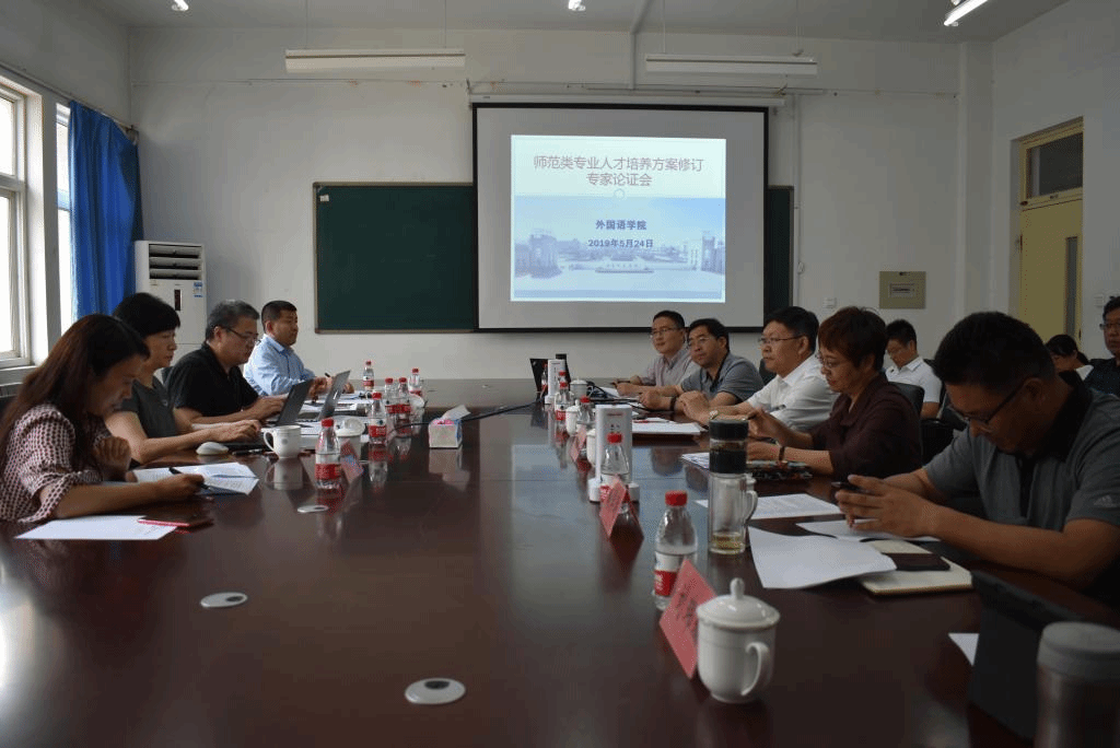 为深入贯彻落实《外语类教学质量国家标准》、《普通高等学校师范类专业认证实施办法(暂行)》和《齐鲁师范学院关于修订师范类本科专业人才培养方案的指导意见》的要求,外国语学院于5月24日上午在学院会议室举办了英语(师范)专业人才培养方案修订专家论证会。学校党委副书记、校长林松柏出席会议。学院邀请了山东师范大学外国语学院院长王卓、山东省教育科学研究院初中英语教研员张涛、山东省友谊出版社教材教辅编辑部主任杨利龙、章丘道通实验学校副校长巩秀荷四位专家参加。会议由外国语学院副院长宋秀葵主持,党总支副书记郁志营、副院长臧学运及学院全体教师参加了此次会议。