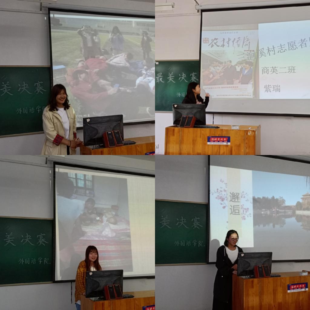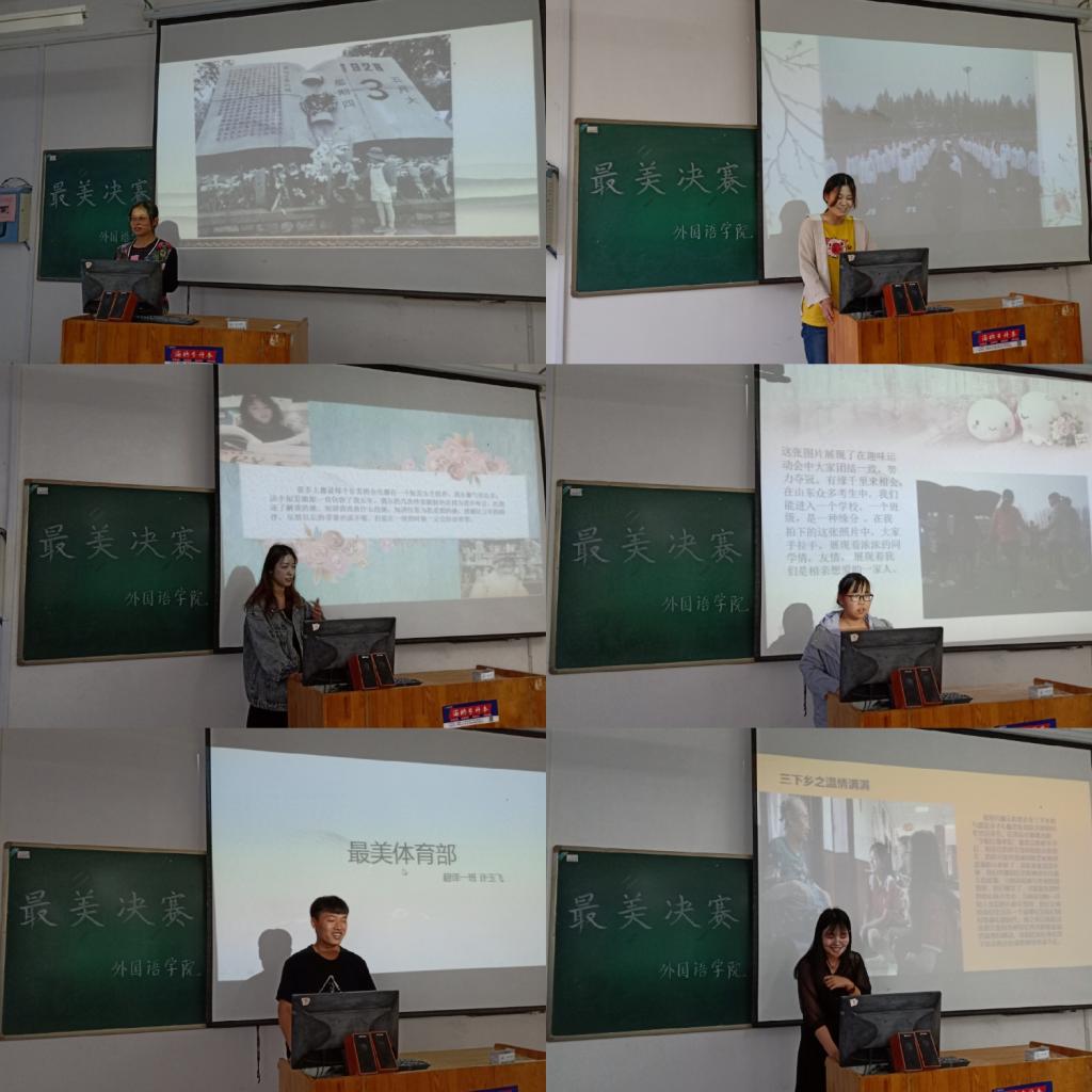 为帮助同学们记录美好生活,定格生活中的心动瞬间,启迪同学们贴近实际、融入社会、感恩生活,外国语学院学生会卫生部、宿管部两部门联合举办“青春璀璨 与美相伴 定格温情 情聚外院”最美图片决赛活动,于5月9日下午2时在一教A108教室举行。参加本次活动有外国语学院主席团陈凯歌等学生会干部以及进入复赛的30位优秀学生、2018年暑期大学生“三下乡”活动优秀学生代表。