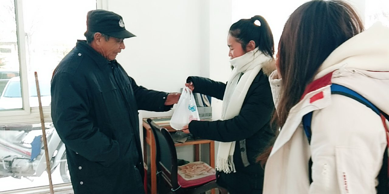 随后,同学们将饺子分装打包,并在盒子上写下献给老师和学校工作人员的暖心语录,用精心挑选的小袋子装好,将满满的心意带给每天辛勤奉献的老师和其他工作人员。最后,同学们分为四个小组,带着打包好的饺子,走在校园的各个角落,把热腾腾的饺子送给了为同学们日常生活奉献的宿管、门卫、保洁处的叔叔阿姨们,以及每天对同学们学习、生活关怀备至的学院领导、老师们。