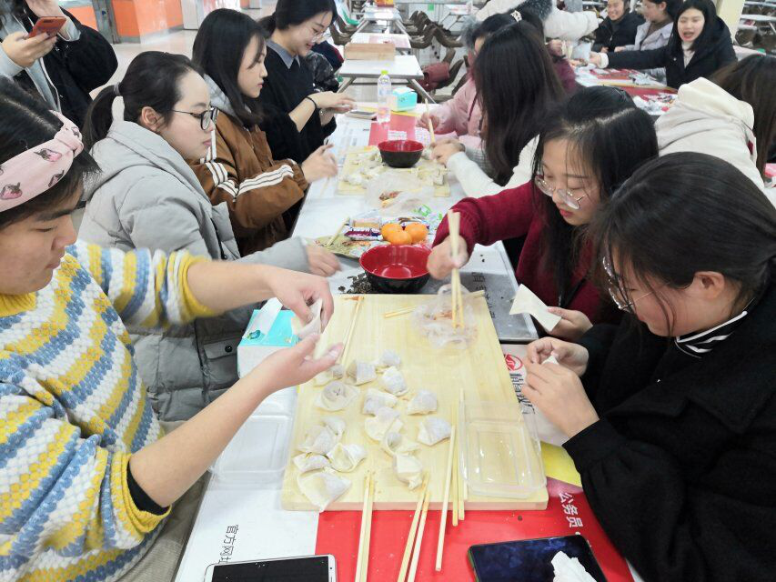 为提高同学们对中国传统文化之二十四节气中“冬至”的了解,引导学生心存温暖,心怀感恩,12月13日下午,在辅导员倪冉老师和班委的组织下,外国语学院2018级翻译一班于学校一餐一楼开展了“冬至饺子,温暖你我”团建活动。