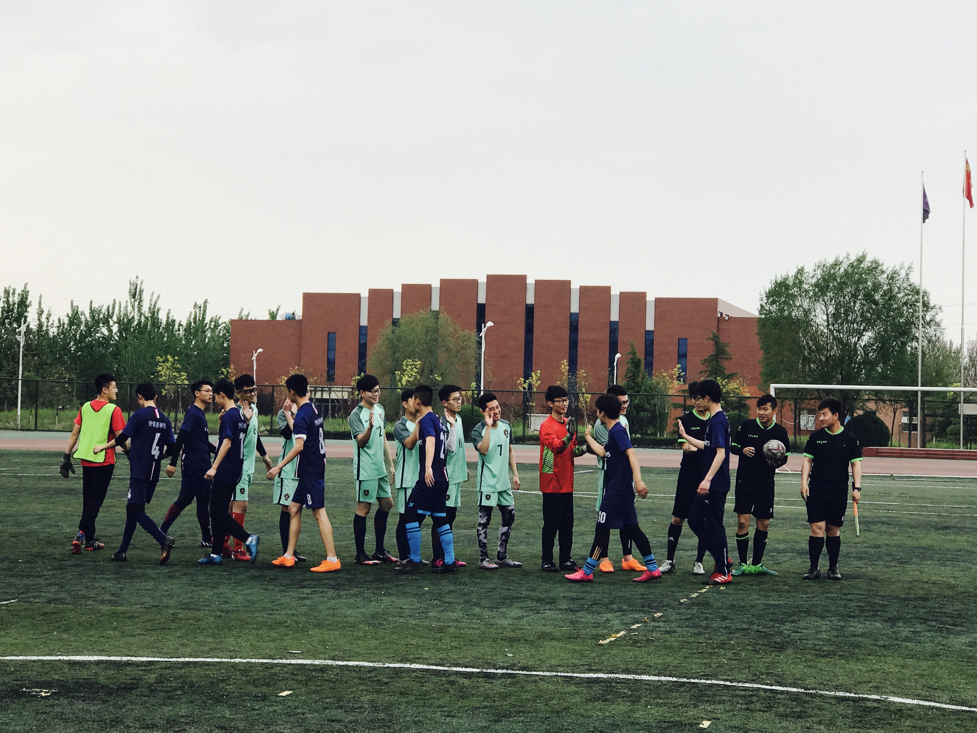 2017年4月19日12:50,外国语学院与音乐学院在操场上进行了八人制足球比赛的决赛。