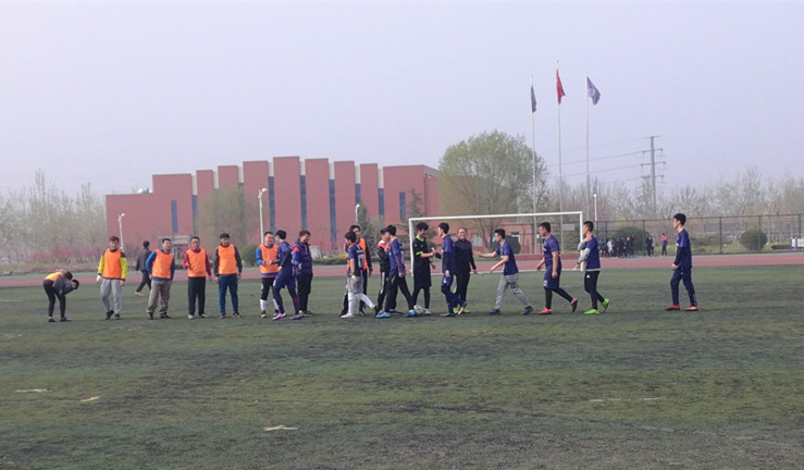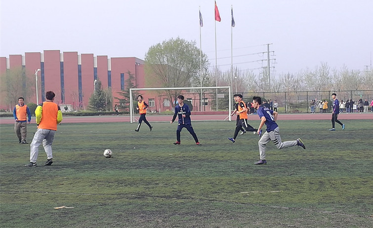 2017年4月5日下午15:30,外国语学院和教职工足球赛在校足球场如期举行。比赛前,参赛队员都积极做好了准备,随着裁判一声令下,激烈的比赛便拉开了帷幕。教职工队的老师们脚下功夫了得,无论是抢球,传踢,气势凌厉。双方各不相让,进攻、防守,你来我往,精彩纷呈。场外学生也激情洋溢,纵情地为队员们加油叫好,现场气氛十分热烈。师生间的隔阂在场上已荡然无存,有的只是飞扬的步伐和矫健的身姿以及师生间如朋友般的浓浓情谊。场上时时发起高潮,观众连连欢呼叫好。足球场就在比赛进行中一点点升温,感染着在场的每一个人。每个球员都毫不示弱,展示了团队的热情与默契,感染着在场的每一个人。