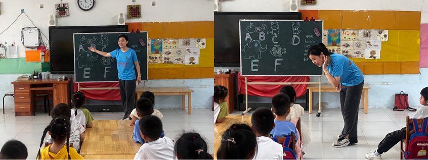 在白云湖镇幼儿园开展教育服务。队员乔涵给幼儿园的孩子们带来了一场生动精彩的英语教学,向幼儿园的老师和孩子们展示了我院学子积极能干的良好精神风貌。