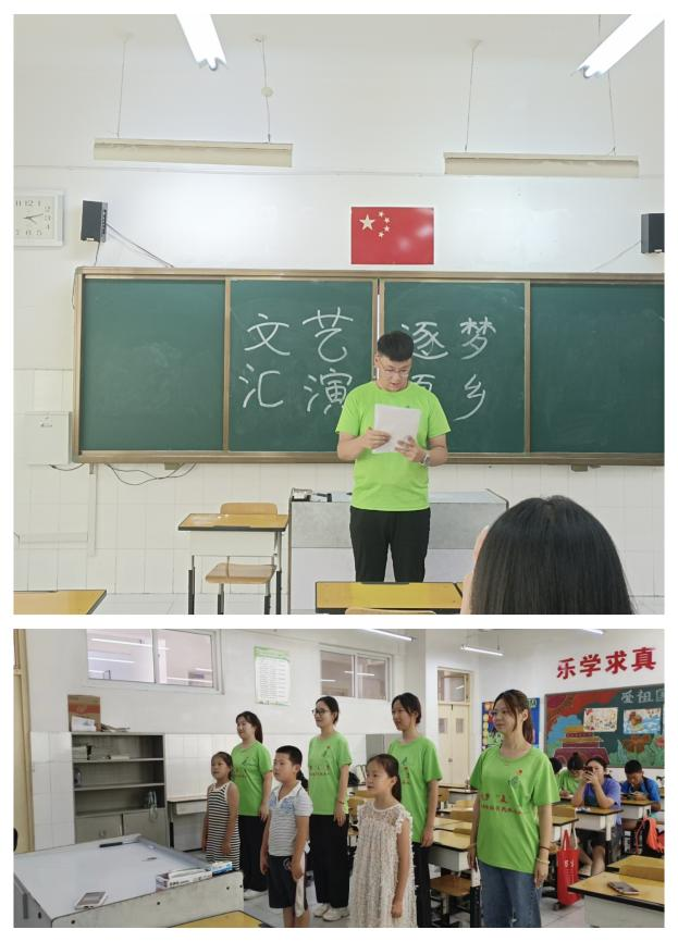 为培养学生保持自信,积极向上的态度,增强学生爱国情怀,进一步加深学生对祖国的热爱,7月14日下午外国语学院逐梦“夏”乡暑期社会实践服务队赴章丘旭升小学开展最后一天的下乡活动,以文艺汇演为结束,让低年级学生在快乐教学中爱上英语,保持昂扬的生活态度。