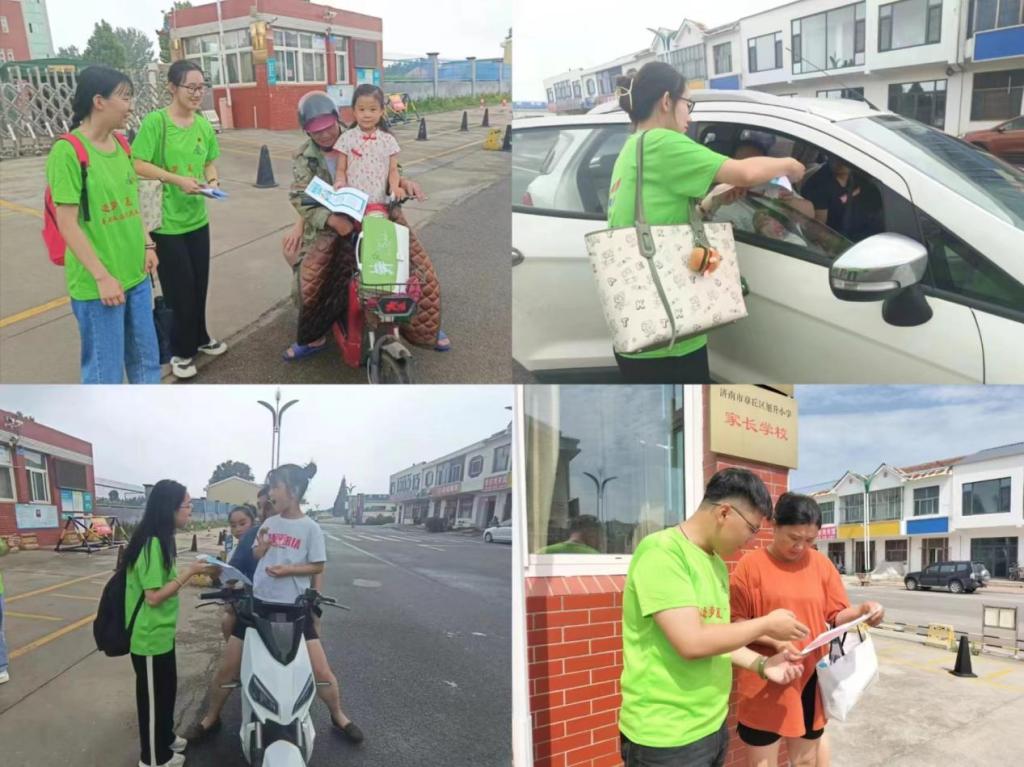 为培养人们夏季防溺水的安全意识,全面贯彻习近平新时代中国特色社会主义思想,使人们更加自信自强、守正创新,7月14日上午,外国语学院逐梦“夏”乡暑期社会实践服务队队员赴章丘旭升村对居民派发传单进行教育宣传。