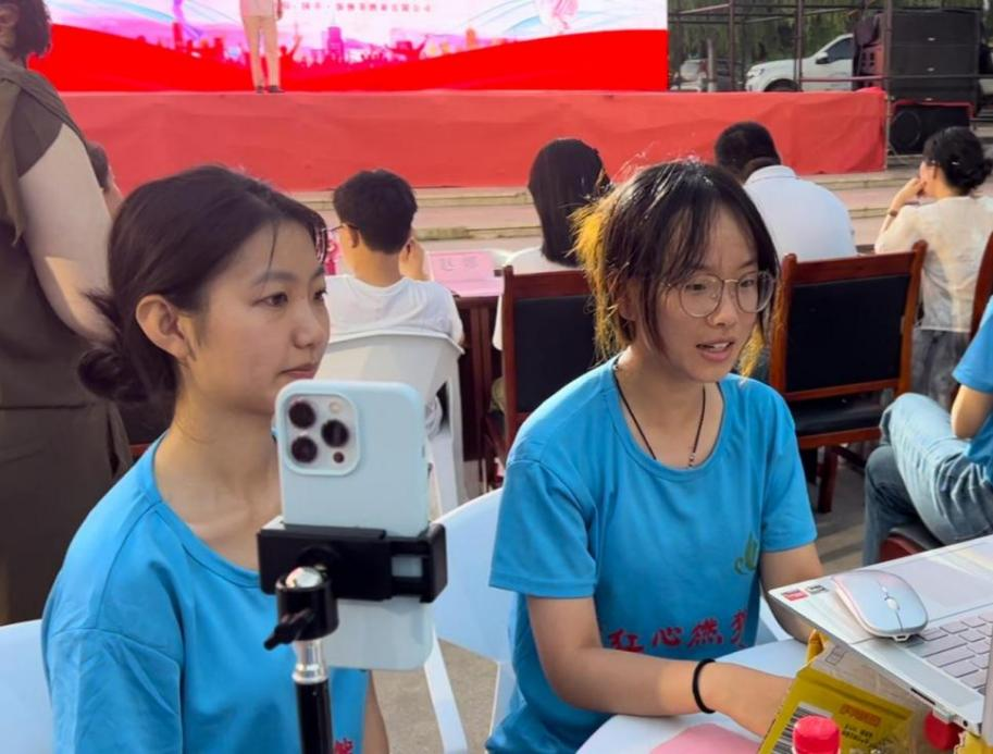 “红心燃梦”暑期社会实践服务队来到章丘区白云湖文化旅游节现场展开志愿服务活动。