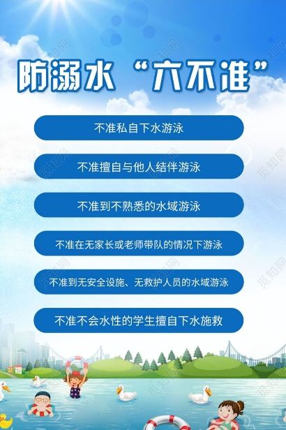 总之,通过参与防溺水的社会实践活动,我们深刻认识到了防溺水的重要性。“六不准”原则是我们防溺水的基本准则,我们要时刻保持警惕,严格遵守这些原则,确保自身和他人的安全。同时,我们也希望通过我们的努力,将防溺水的意识和知识传递给更多的人,共同营造一个安全的社会环境。防溺水不仅仅是一项个人责任,更是全社会共同的责任。让我们携起手来,共同努力,预防溺水事故的发生,为社会的安全和稳定贡献自己的一份力量。