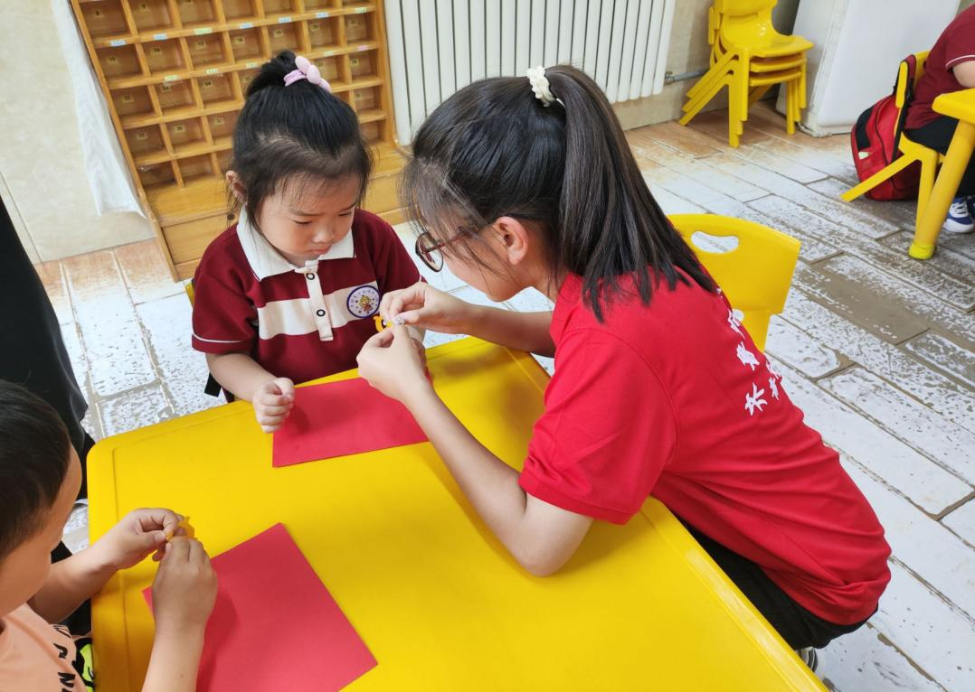 3.随后,我们引导小朋友们认识党旗和党徽,并帮助他们用手工制作的方式制作出他们心中的中国共产党党旗。