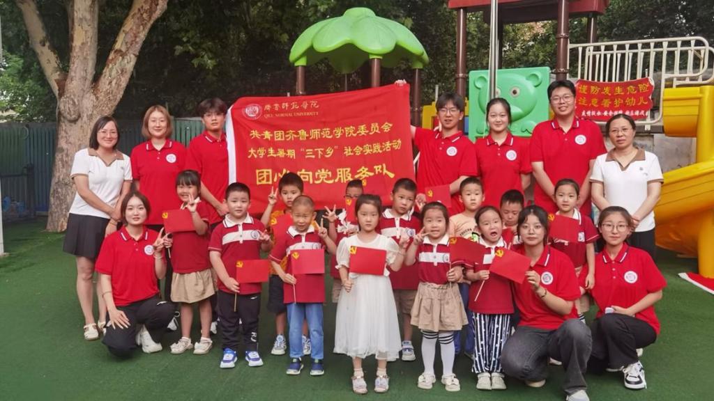 引言:为深入学习宣传贯彻习近平新时代中国特色社会主义思想,全面贯彻落实党的二十大精神。7月30日,共青团齐鲁师范学院委员会“团心向党”服务队,在团委老师带领下来到济南市天桥区小白鸽幼儿园,以“童心向党”为主题,对幼儿园中班的小朋友们进行爱国红色教育活动。