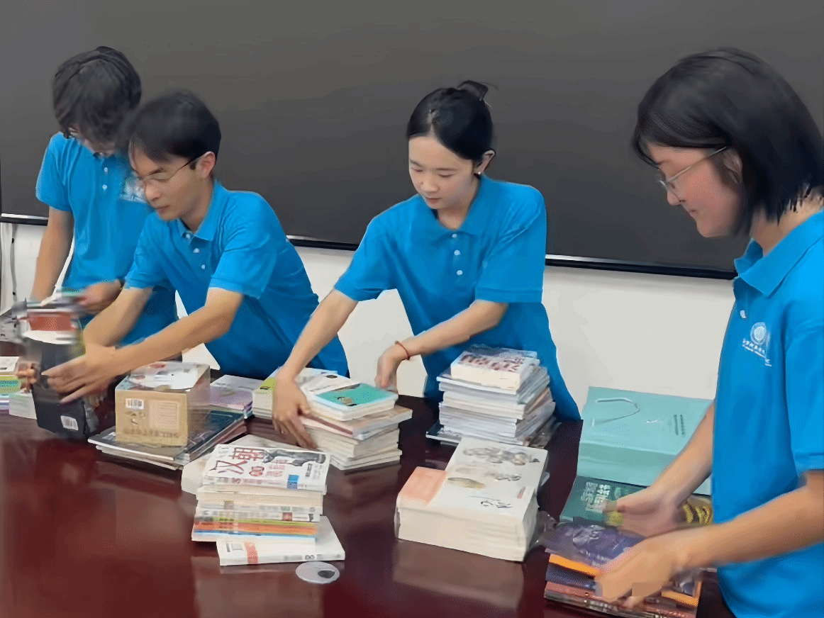 出征前,实践队员们有序开展物资整理工作。大家将精心挑选的课外图书等物资进行分类打包,每一本书都饱含着对乡村儿童的期待。这些物资不仅是知识的载体,更是外国语学院学子传递爱心、助力乡村教育的生动体现。队员们认真细致地整理着每一件物品,确保物资能够安全、顺利地送达实践地,为实践活动的顺利开展筑牢“物质桥梁”。