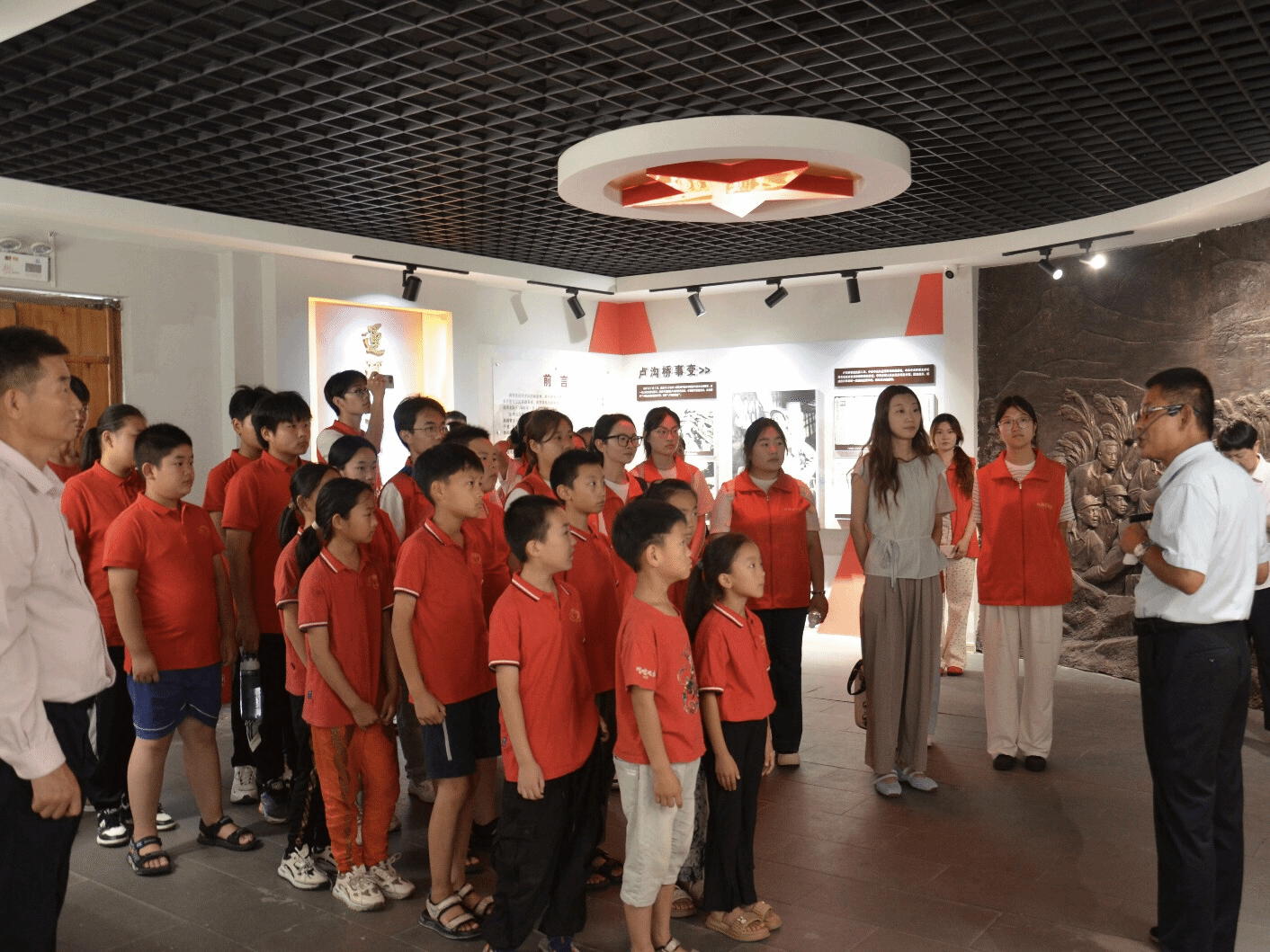 在白楼湾红色教育基地,讲解员孙道亭带领队员们与留守儿童共同参观运河支队纪念馆。一行人依次驻足“抗日烽火燃鲁南”“运河两岸频亮剑”“秘密通道连延安”等主题展区,深入了解运河支队的抗战历程。作为运河支队诞生与战斗的热土,周营镇见证了这支英雄队伍的峥嵘岁月。从成立到抗战胜利,运河支队历经百战,为巩固和扩展抗日根据地立下不朽功勋。期间,四百多名英烈撒碧血于热土,葬忠骨于青山,他们的英勇永远激励着后人。