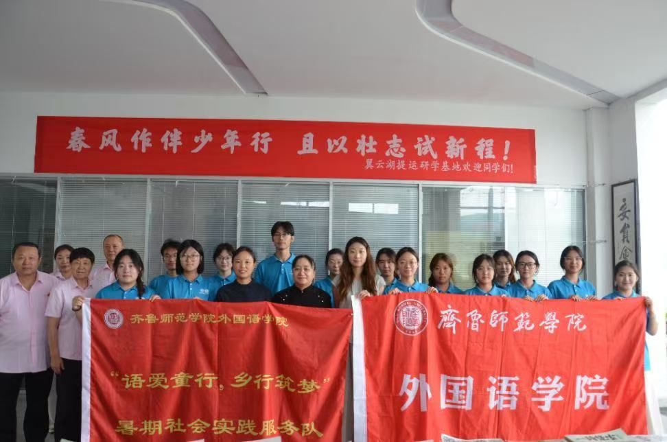 为深入学习贯彻习近平新时代中国特色社会主义思想,积极响应国家乡村振兴战略号召,引导青年学生在社会实践中受教育、长才干、作贡献,2025年7月8日至12日,齐鲁师范学院外国语学院“语爱童行,乡行筑梦”实践队赴山东省枣庄市开展暑期“三下乡”社会实践活动。学院党委副书记迟英娟、辅导员吴昊参与活动并指导实践工作。在为期5天的实践中,实践队通过红色教育、乡村振兴调研、关爱困境儿童、非遗文化传承、国防教育志愿服务等系列活动,以实际行动助力乡村发展,展现了新时代青年的责任与担当。