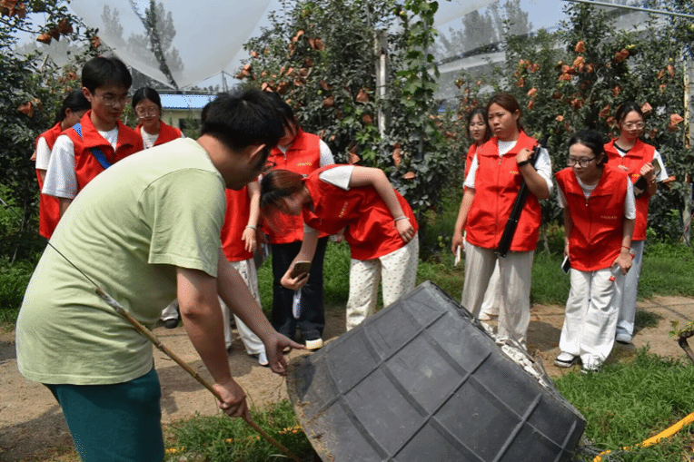 7月9日,队员们走进枣庄市峄城区榴园镇,在山东美果来食品有限公司了解到石榴作物的全产业链发展,其“公司+合作社+农户”模式带动千余户农民增收,让大家看到科技赋能农业的力量。随后,队员们沿习近平总书记 2023 年考察路线,探访石榴博览园与中国石榴博物馆,系统学习石榴从汉代传入到成为支柱产业的千年历程,并探索“石榴+文旅”、“电商助农”等新模式,为乡村振兴提供了多元思路。