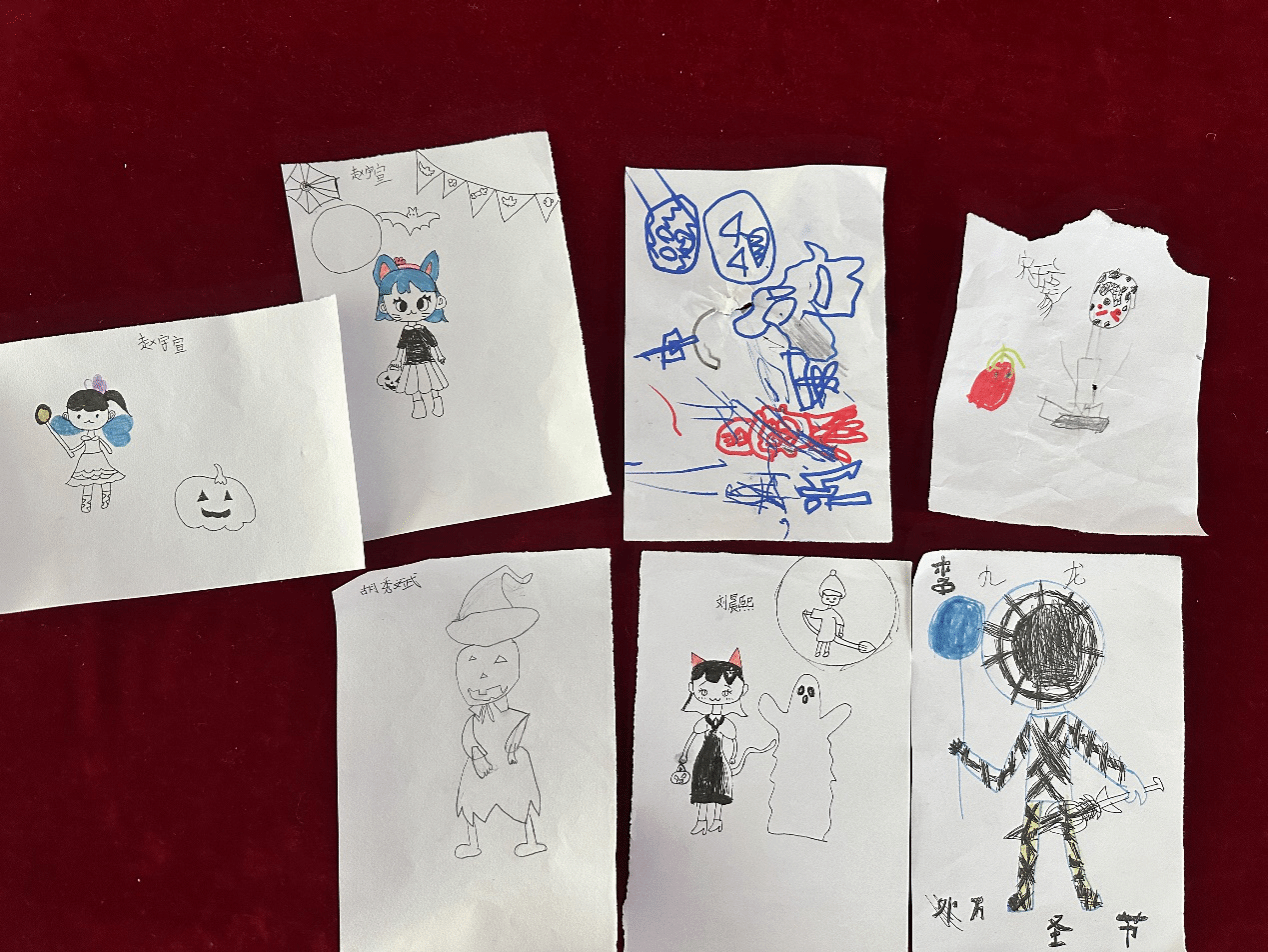 两个环节的互动结束后,我们还准备了小任务:让孩子们用刚学的颜色单词,描述自己心中的万圣节装扮。“I want a red witch dress and a black hat!”(我想要一条红色的女巫裙和一顶黑色帽子!)“Mine is an orange pumpkin costume!”(我的是橙色的南瓜装扮!)孩子们踊跃分享,在表达中巩固了英语知识,也收获了节日文化的新鲜感。