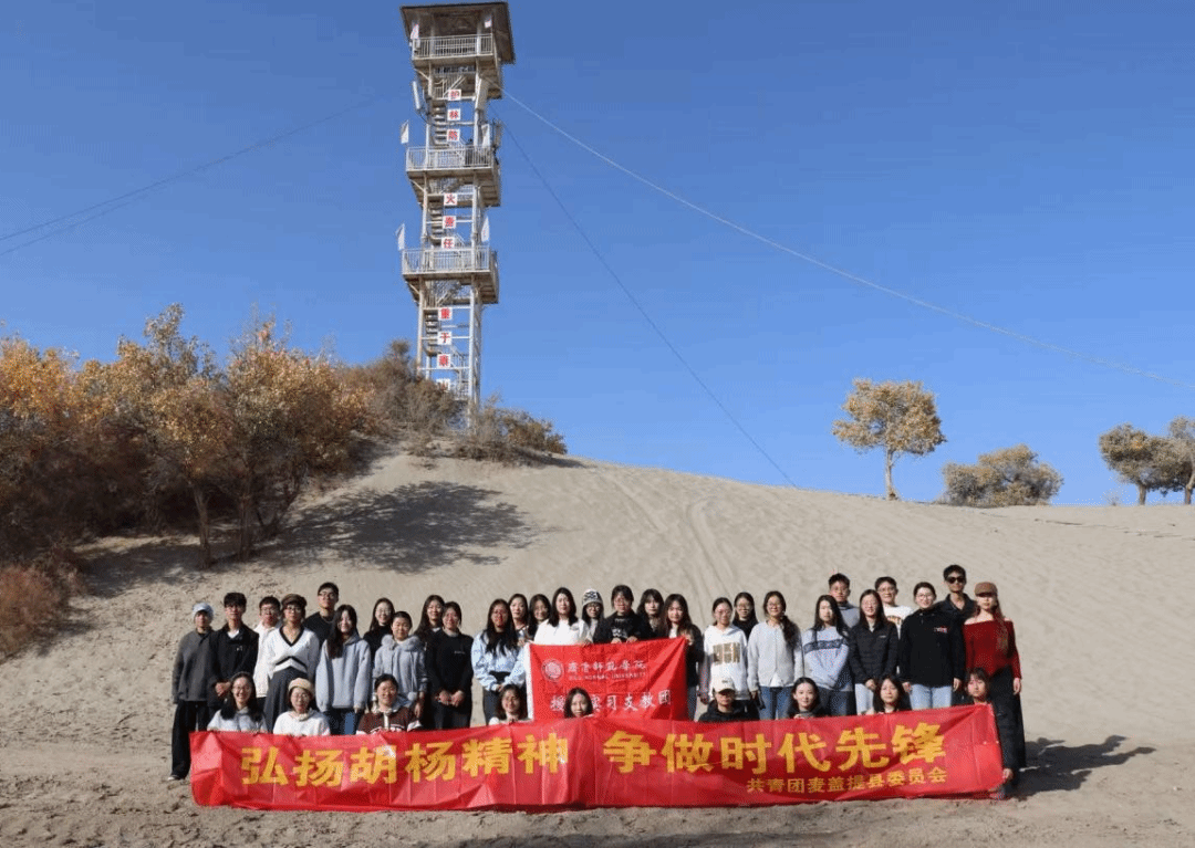 风沙肆虐,却难掩杏坛仁人志士的绿色征程。11月1日,在共青团麦盖提县委员会与日照援疆指挥部的周密部署与鼎力支持下,齐鲁师范学院第八批援疆实习支教团踏入胡杨林场,拉开了“弘扬 胡杨精神,勇做时代先锋”生态守护行动的序幕。