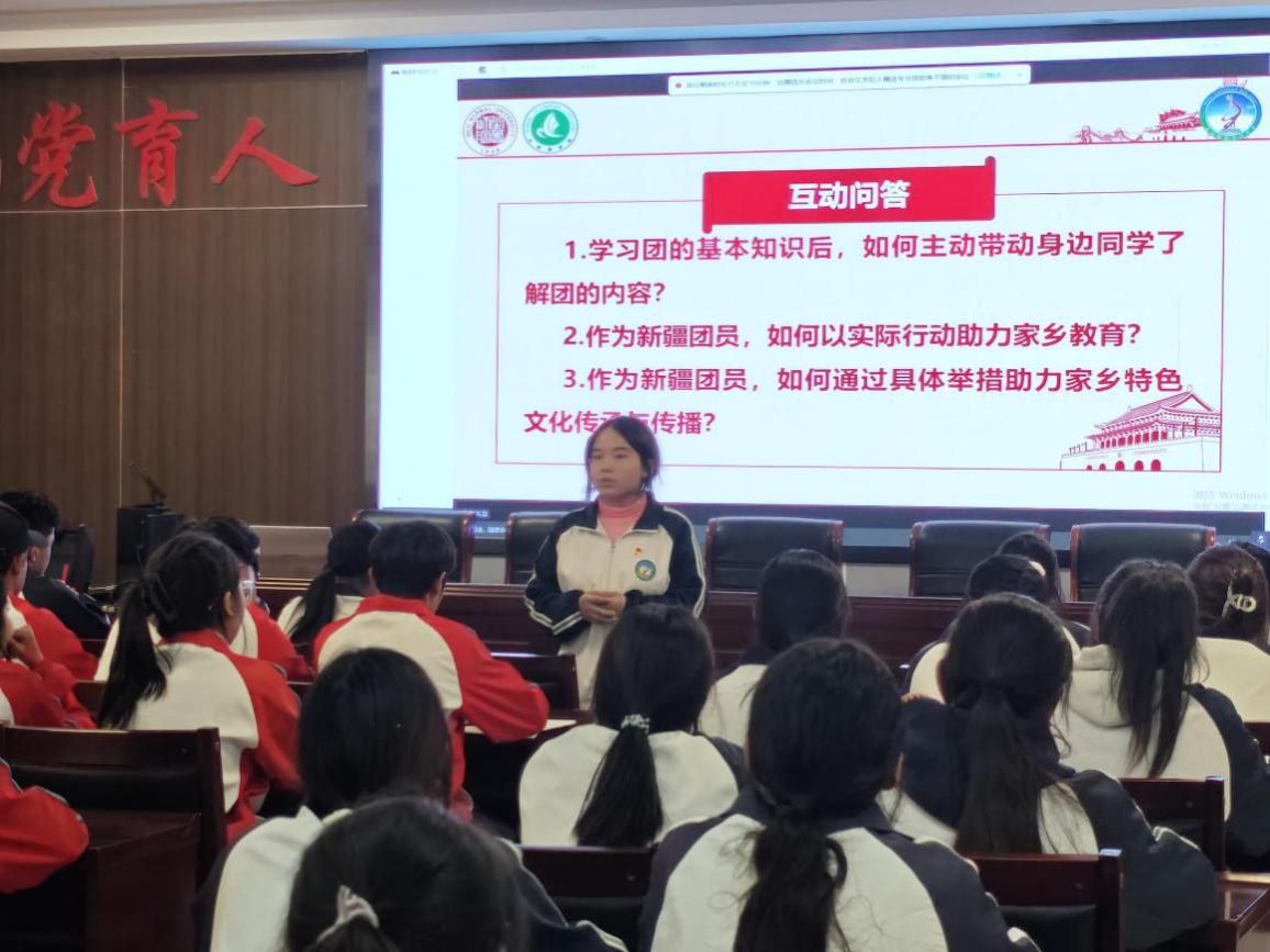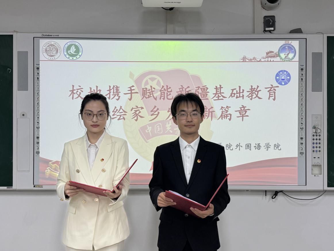 麦盖提县实验中学的团员代表们还分享了本地团员的实践探索成果,包括帮助少数民族同学补习功课、参与“乡村书屋”的整理维护、担任“文化宣传员”讲述家乡发展故事等,他们用实际行动践行着团员的使命与责任。而外国语学院的支教团员代表则立足英语师范 专业特色,分享了分层教学、文化融入式教学的实践经验,以及将新疆民俗故事融入英语课堂的创新做法,既助力学生提升了语言能力,又推动了中华优秀传统文化与边疆特色文化的传承与发展。