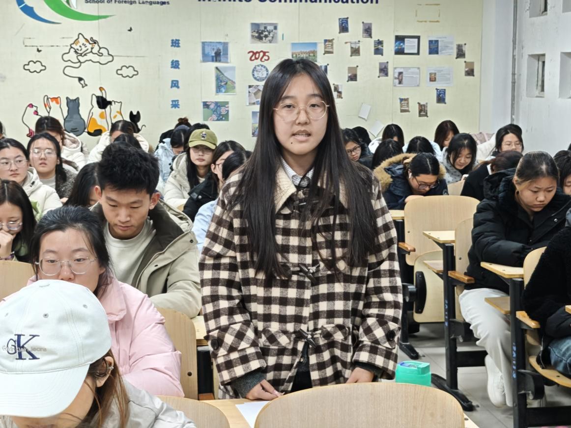 针对麦盖提县高中英语教学的实际需求,外国语学院2024级英语(师范类)团员代表汇报了支教实习的准备情况,表达了将专业所学转化为服务边疆教育事业动力的坚定决心。他们承诺,要让教学既有专业的高度,又充满情感的温暖。