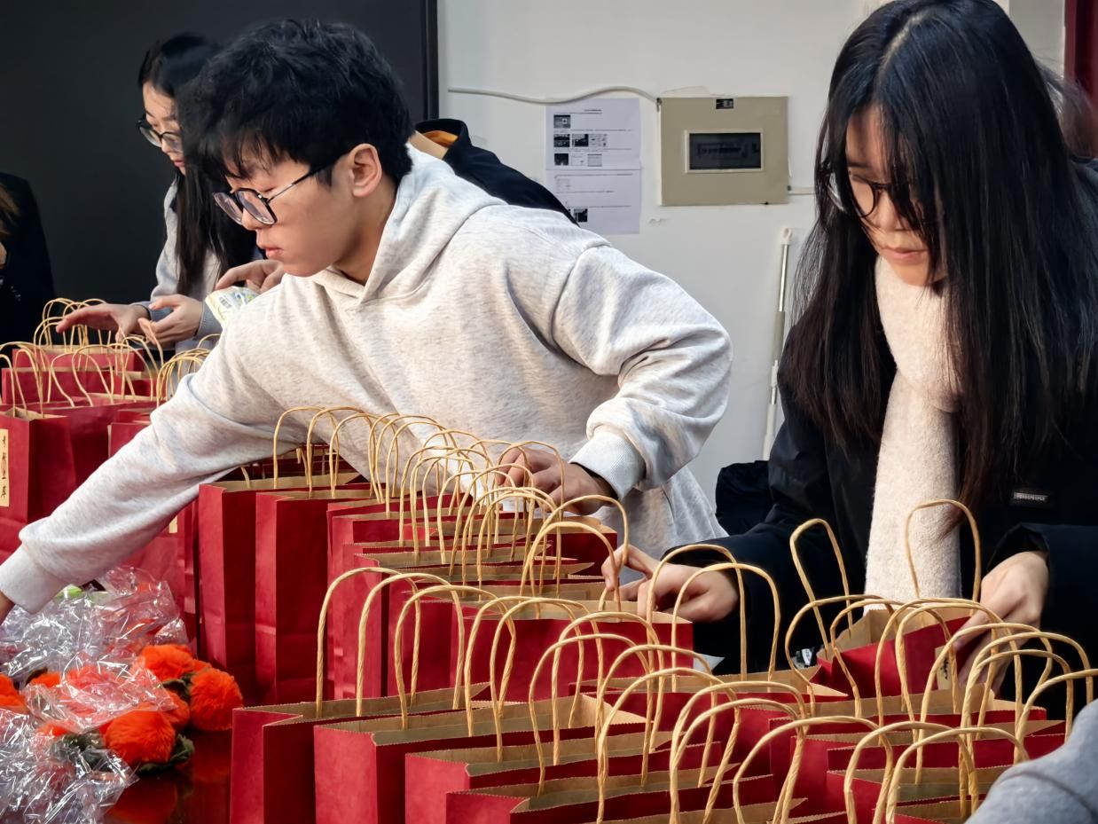 活动筹备阶段,外国语学院青年志愿者协会的同学们化身“暖心使者”,分工协作、默契配合。从礼物的精挑细选与搭配,到包装的创意设计与制作,每一个环节都凝聚着志愿者们的心血与诚意,只为将最纯粹的祝福与最贴心的关怀,精准传递给每一位奋力拼搏的考研学子。