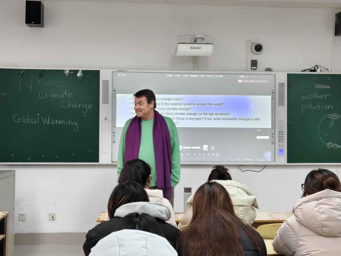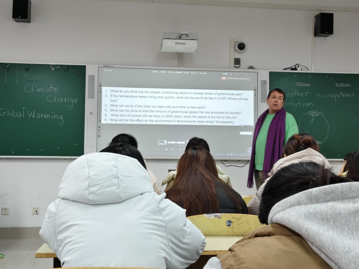 为提升学生在思辨场景中的英语应用能力,外国语学院于12月18日下午在二教B214举办了以“气候变化与环境保护”为主题的外教英语角活动。外教David Dee老师以开放互动的教学风格,带领同学们在深度交流的氛围中,开启了一场关于生态议题的英语思辨探讨。