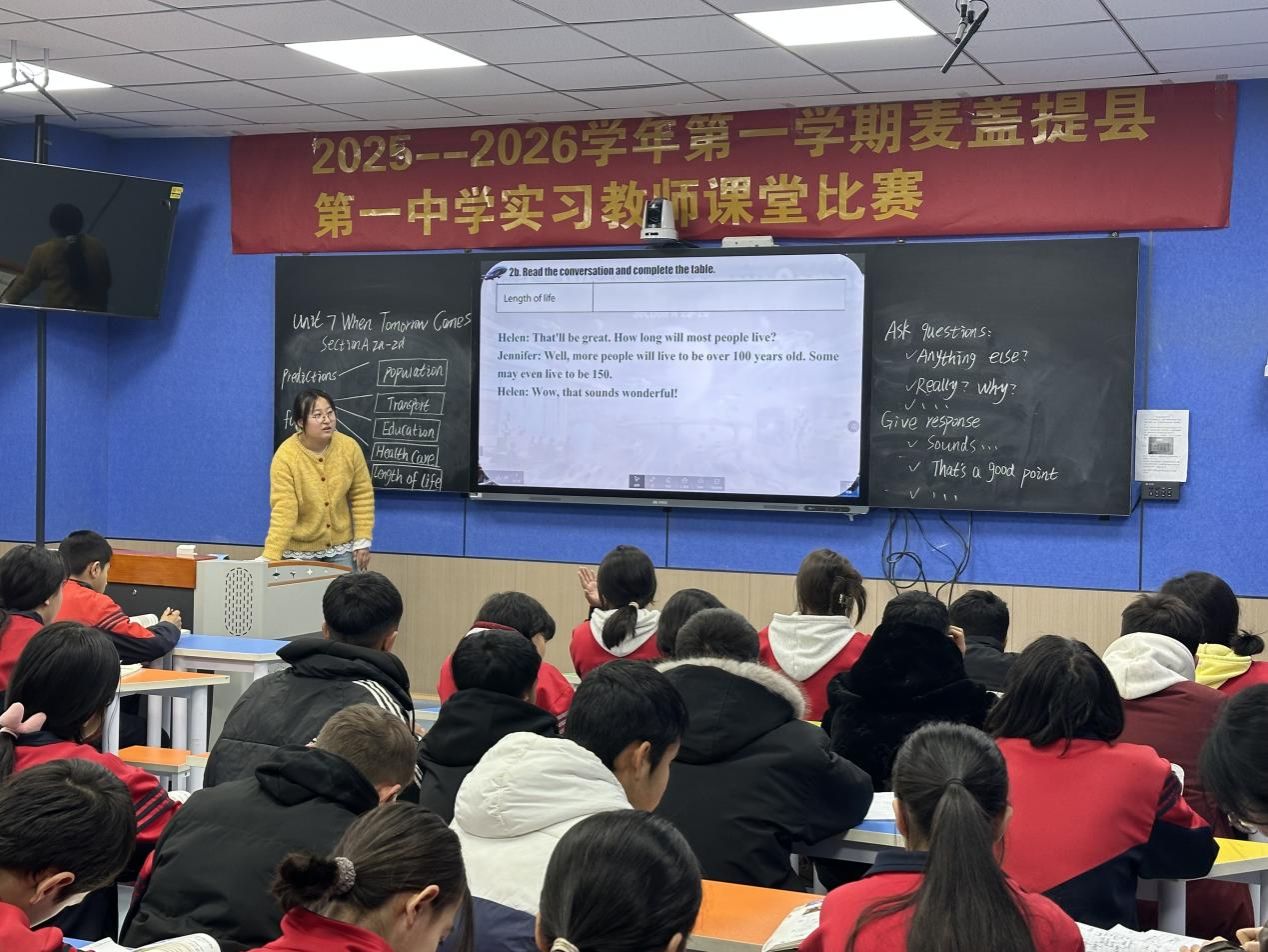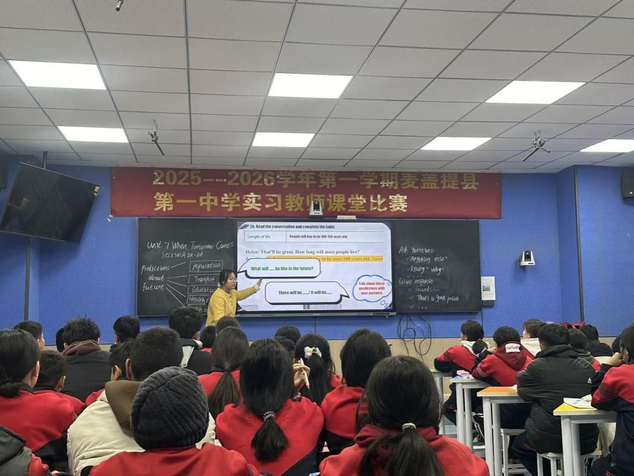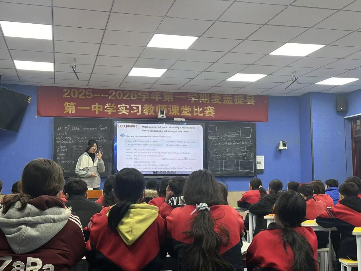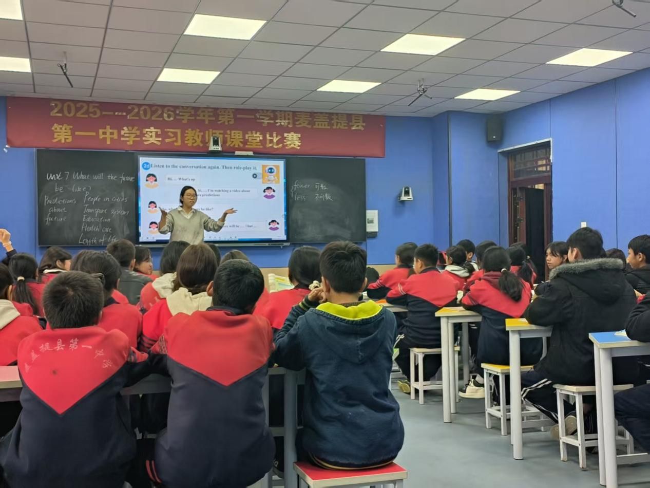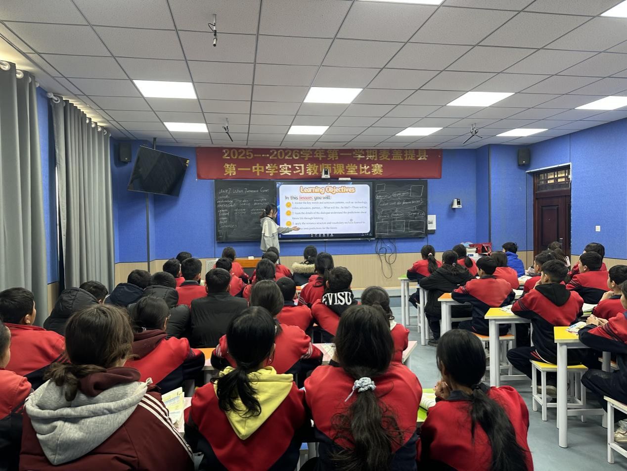 为进一步夯实实习教师的教学基本功,加速其专业成长进程,搭建一个交流互鉴、锤炼技能的有效平台,近日,麦盖提县第一中学精心组织并成功举办了实习教师课堂比赛。本次比赛聚焦课堂教学实践,旨在通过“以赛促练、以评促研”的方式,引导青年教师深入钻研教材教法,反思教学行为,全面提升教学设计、课堂实施与育人能力。比赛过程中,参赛教师们高度重视,精心准备,充分展示了各自的教学理念与课堂风采,呈现了一节节目标明确、设计精巧、互动充分、富有生成性的优质课例,展现了学校青年教师队伍严谨踏实、积极进取、勇于创新的良好精神风貌。此次活动不仅是教学技能的比拼,更成为了一次生动的教学研讨与集体研修,营造了浓厚的教学教研氛围。