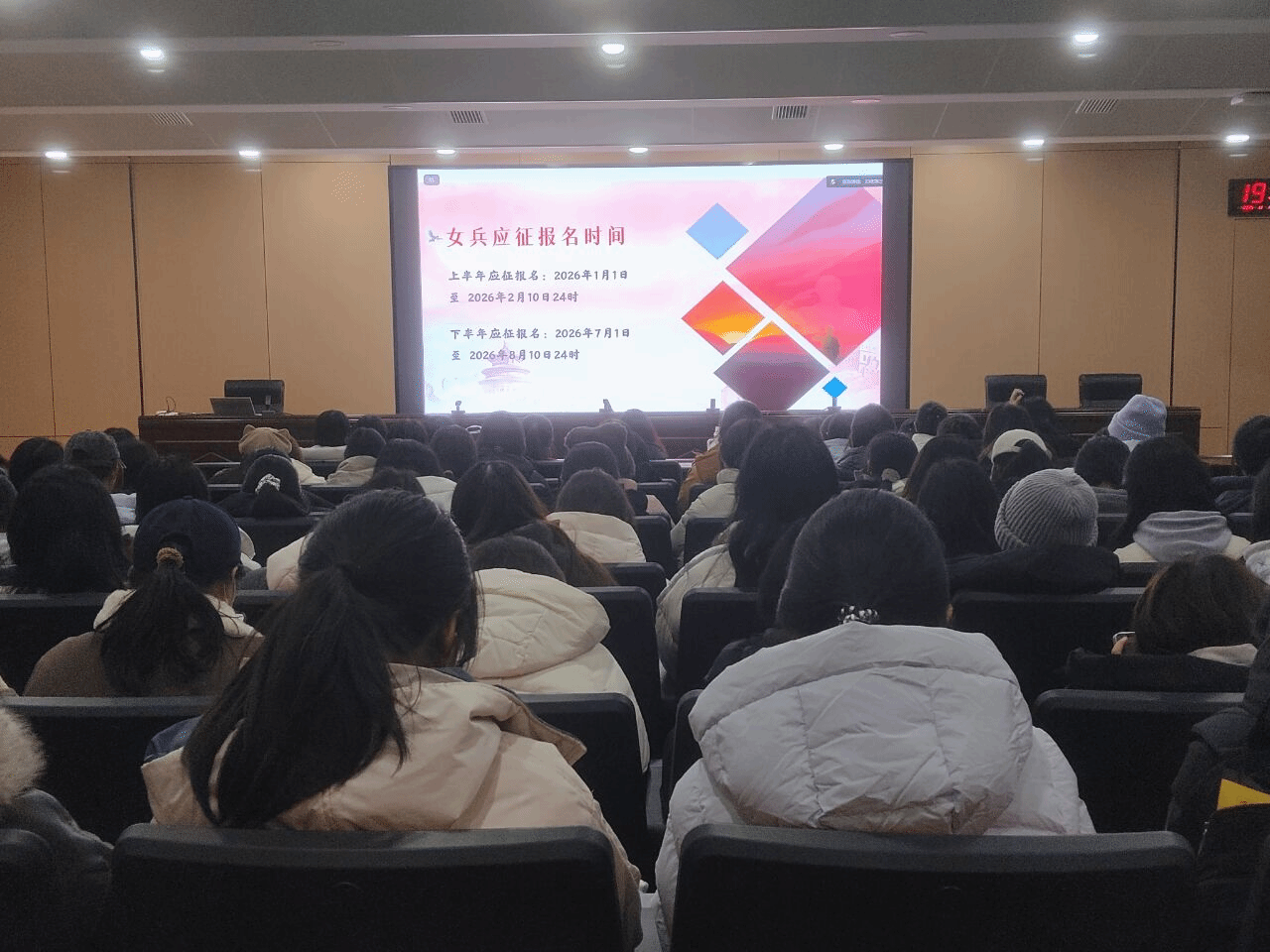 为进一步推进2026年春季征兵工作,激励适龄大学生响应国防号召、投身军旅事业,12月11日,外国语学院在第二学术报告厅组织开展“投身军旅 热血铸就钢铁长城”专题宣讲活动。外国语学院辅导员高晨轩老师,24级部分学生及25级全体学生参加。本次活动由曹荣欣主讲。