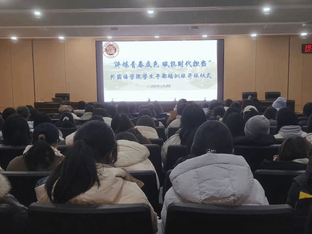 为深入落实立德树人根本任务,加强学生干部队伍建设,提升学生骨干的综合素养与履职能力,充分发挥学生干部在学院发展与同学成长中的桥梁纽带作用,2025年11月20日至21日,外国语学院成功举办“淬炼青春底色 赋能责任担当”学生干部培训班。学院党委书记于江,党委副书记迟英娟,团总支书记牛荦,全体辅导员以及100余名各级学生干部参加了此次培训。