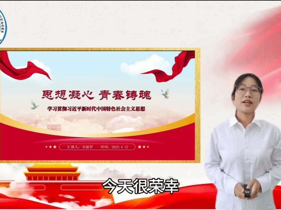 为深入学习贯彻习近平总书记关于作风建设的重要论述,发挥青年讲师团理论宣讲骨干作用,引导青年学生涵养优良作风、勇担时代使命,2025年5月8日,外国语学院青年讲师团成员吴丽君以线上形式,为2024级翻译和跨境电子商务专业全体同学开展主题团课,专题宣讲作风建设相关内容。