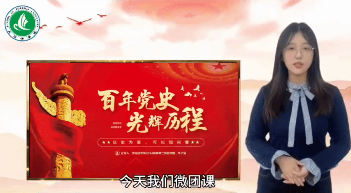 为深入学习贯彻习近平新时代中国特色社会主义思想,引导青年学子从百年党史中汲取奋进力量、坚定理想信念,2025年5月25日,外国语学院青年讲师团成员李子涵以线上形式开展“百年党史,光辉历程”主题团课宣讲,2022级全体同学在线同步参与学习。