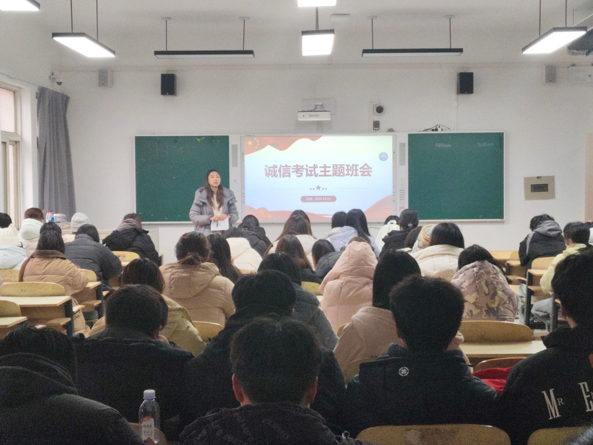 为深入贯彻立德树人根本任务,强化学生诚信意识与纪律观念,营造公平公正、风清气正的考试氛围,助力学生以诚信姿态迎接期末考试,2026年1月7日,外国语学院组织各班级集中开展“诚信考试”主题班会,全体学生参与此次教育活动。