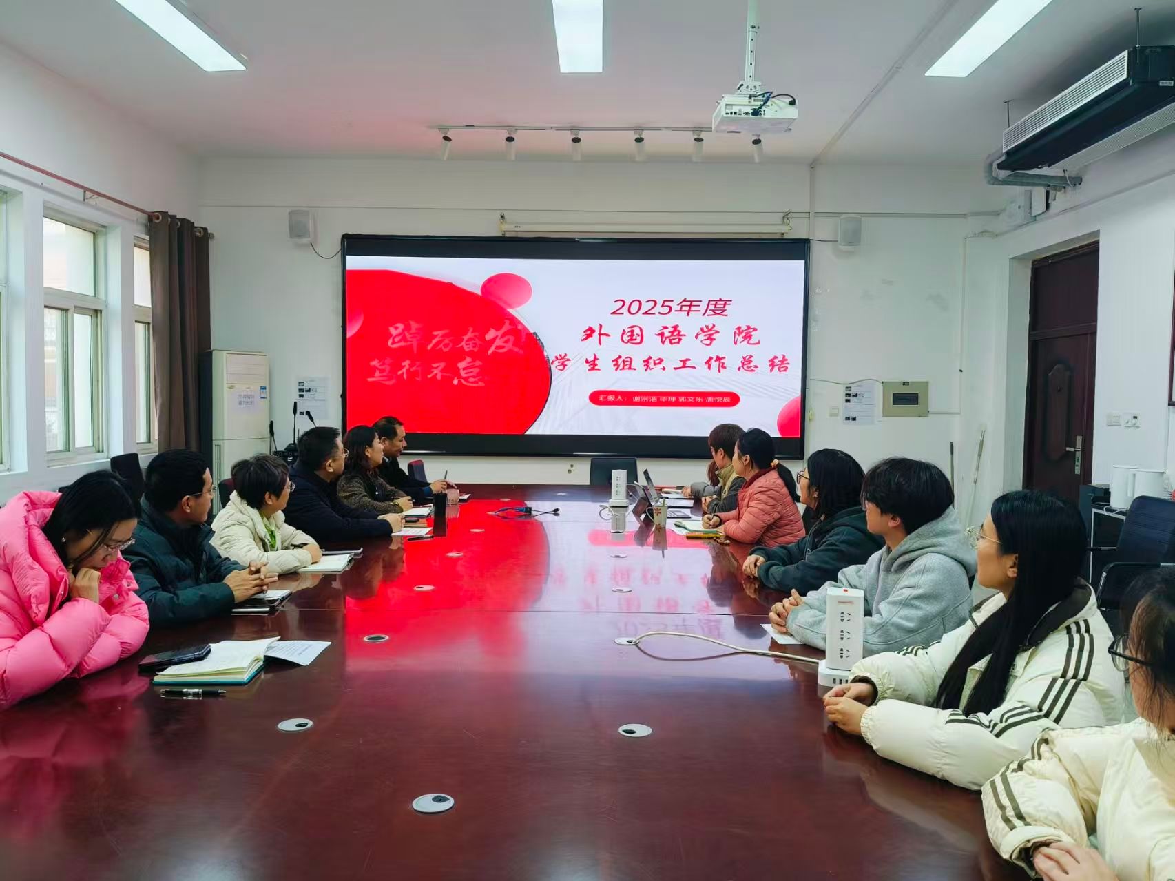 为准确掌握学生会组织运行情况,客观评价其工作成果,进一步强化学院党委对学生会的引领与指导,更好推动学生会发挥服务同学、连接师生的桥梁纽带功能,外国语学院党委于1月7日召开专题会议听取学生会组织2025年年度工作汇报。外国语学院党委书记于江,院长宋秀葵,党委副书记迟英娟,副院长邹德平,团总支书记牛荦,办公室主任朱慧,辅导员吴昊及学生会主席团成员参加了本次会议。