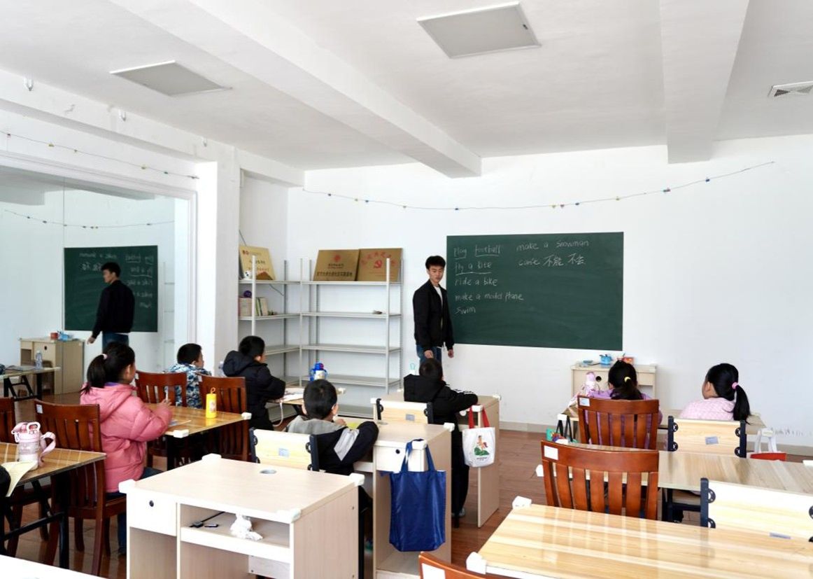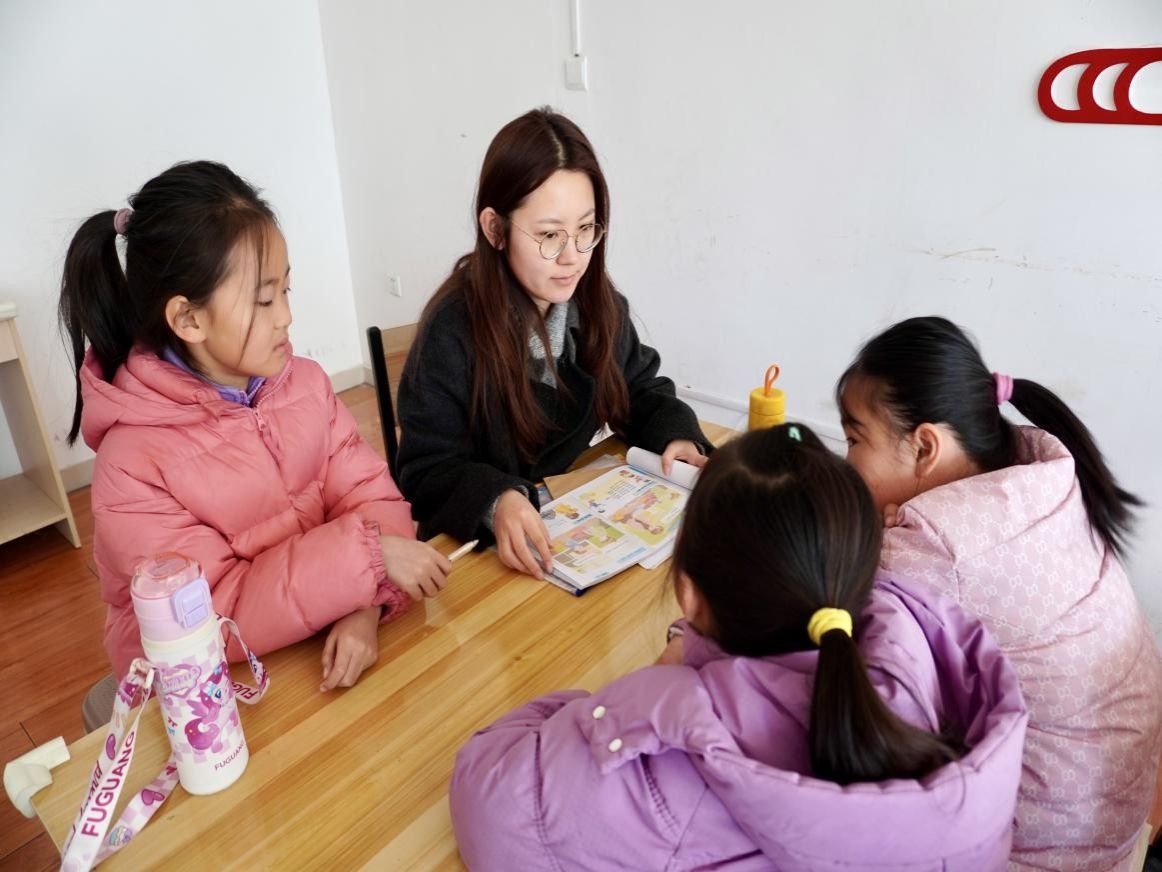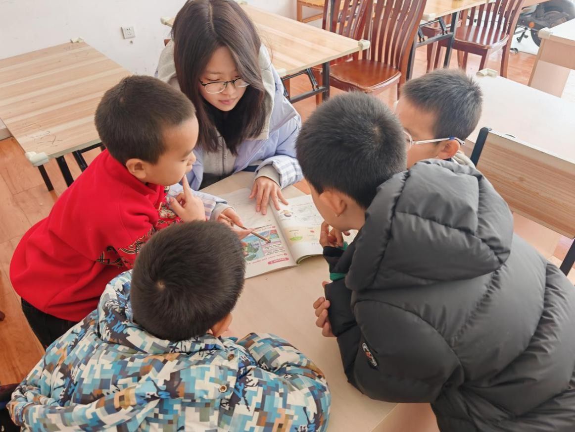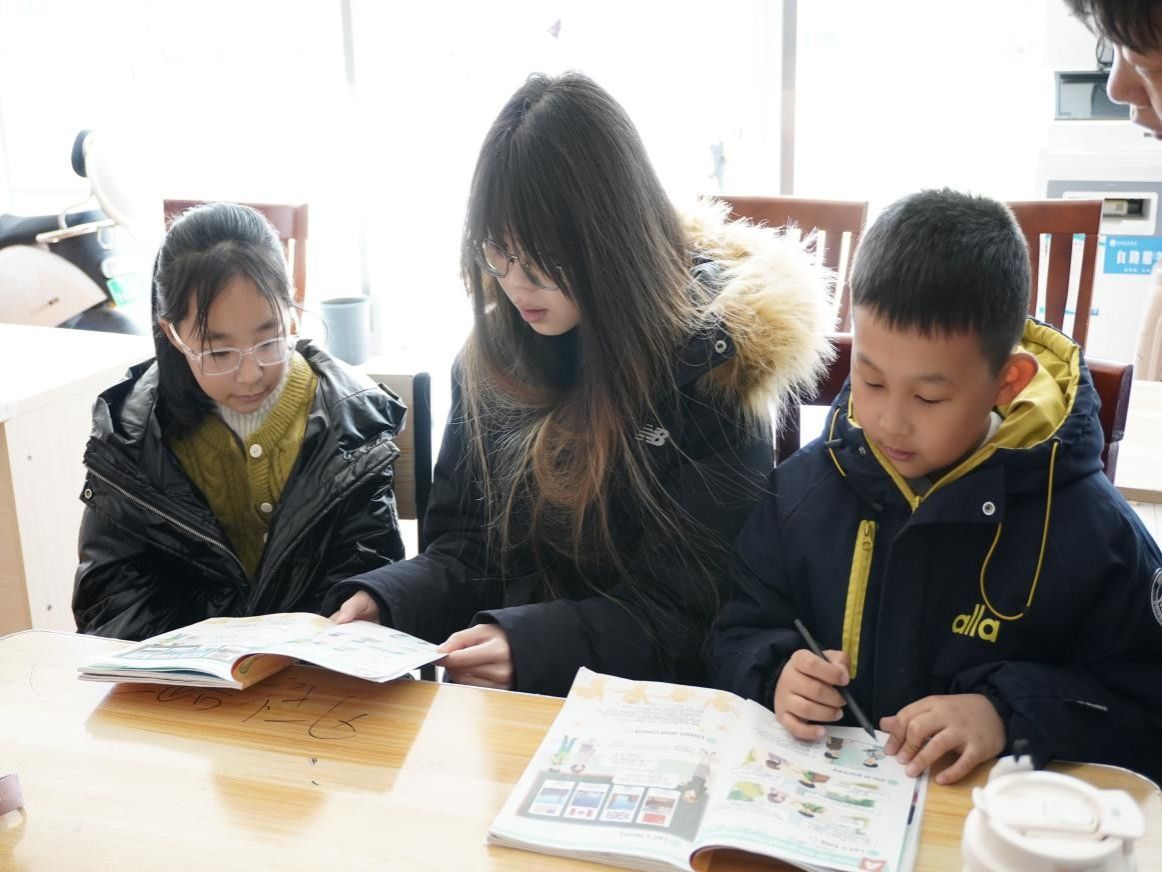 辅导区里,王雨桐用心守护孩子们的好奇心,对他们感兴趣的单词逐一讲解、现场造句。当孩子们发音和语法出现问题时,她认真讲解语法点,并鼓励孩子们再试一次。最后,她带着孩子们大声练习,“I love my family. We are happy.”过程中,孩子们跟着认真朗读,大胆开口说英语,学习氛围浓厚,就连班里那个最内向的女孩也开口说英语的时候,我们相视一笑,目光里是满满的感动与欣慰。