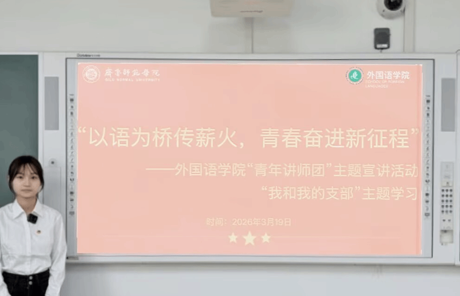 为深入学习贯彻习近平新时代中国特色社会主义思想,引导青年学子传承红色基因、坚定理想信念,自觉将个人成长与国家发展、民族复兴紧密相连,3月19日外国语学院在二号教学楼B233教室开展“语通中外,志在青春”青年讲师团第一期线下宣讲活动。本次活动以“赓续共产党人精神谱系,书写新时代青春答卷”为主题,由2023级英语(师范类)1班辛宇昕主讲,2024级翻译专业全体同学到场参与。