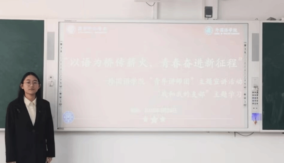 活动中,田咏琪以“以语为桥传薪火,青春奋进新征程”为题,紧扣“语通中外,志在青春”核心展开宣讲。她从青春担当、榜样引领、成长路径、时代责任等维度,深入解读新时代青年的成长方向,强调“强国有我”绝非一句口号,而是青年躬身实践的行动指南,号召学子既要深耕专业、锤炼过硬本领,更要拓宽国际视野,在全球化浪潮中用心讲好中国故事。