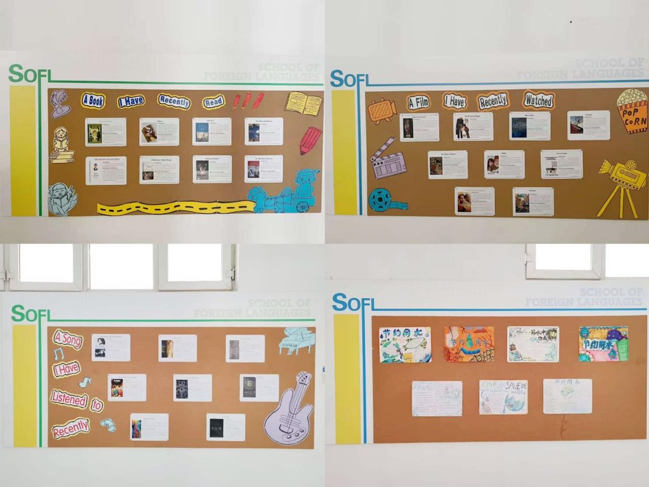 为充分发挥同学们的创新能力和交流能力,浓厚学院学习氛围,陆续举办了“最近在读”“最近在看”“最近在听”分享展示活动。学生们从内容筛选、设计理念、色彩搭配等多个方面入手,将学院的文化墙打造成了一个兼具艺术性和教育性的场所,有的以电影为主题,培养同学们的跨文化视野;有的以英文名著读后感为主题,加深同学们对英语文化和历史的了解;有的则以好书推荐为主题,激发同学们的阅读欲望。设计过程中,同学们充分发挥了自己的创新思维和团队协作精神,用实际行动诠释了“环境育人”的理念。这些文化墙作品不仅装点环境,更展示和传递了学生们积极向上的价值观和人生观。