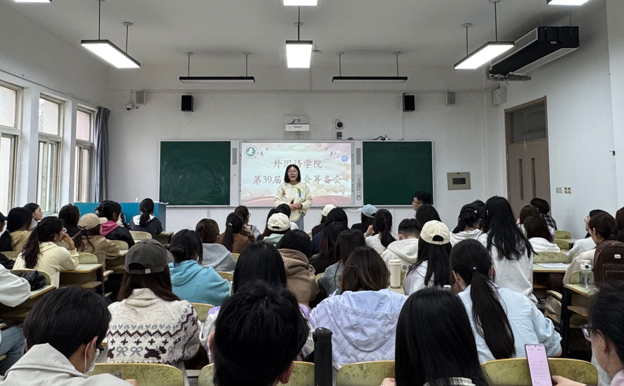 为稳步推进第39届运动会各项筹备事宜,确保赛事期间服务保障工作高效有序运转,充分彰显学院师生昂扬向上的精神风貌,4月16日下午,外国语学院在二教B231召开第39届运动会筹备会。外国语学院团总支书记牛荦、辅导员刘欣欣、第三十二届学生组织全体成员参加了本次会议。