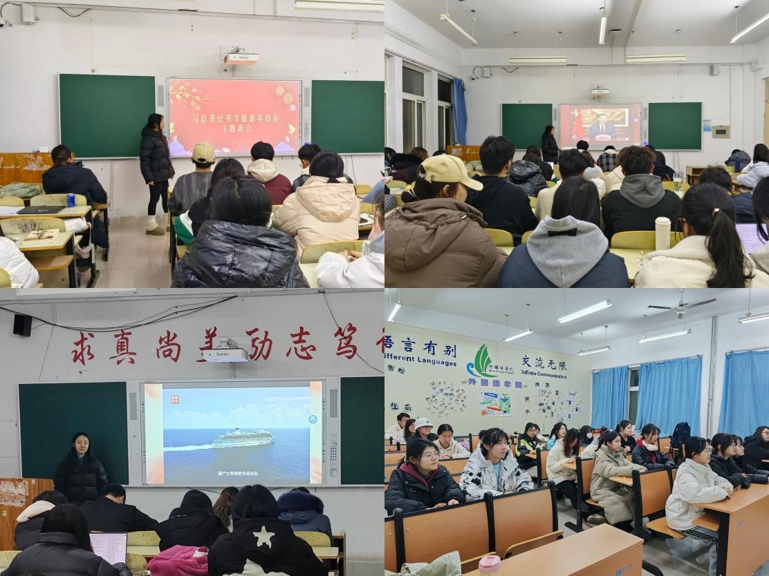 为了深入了解习近平总书记在新年致辞中所表达的重要思想和政策,增强我院学生对国家发展和社会进步的认识,激发其爱国情怀和责任意识,同时为了培养学生的国际视野和跨文化交流能力,外国语学院于1月3日面向全体外院学生组织开展“习近平总书记英文版新年致辞”主题班会,这次主题班会有线上、线下两种开展方式。