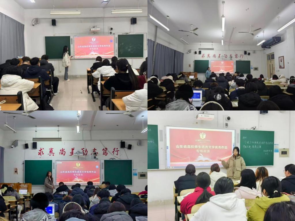为深入贯彻落实全国高校师生语言文字文化精神,进一步推动语言文字文化的传承与创新,12月3日晚,外国语学院组织学生观看山东省高校师生语言文字优秀作品专场展演活动。外国语学院全体学生参与此次活动。