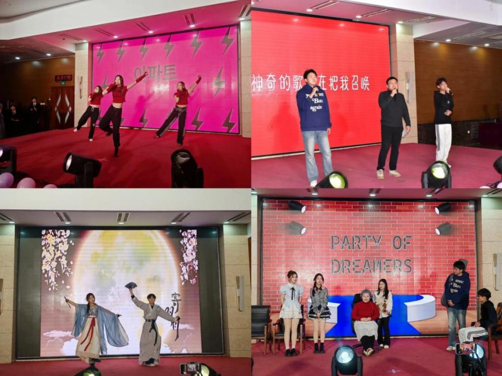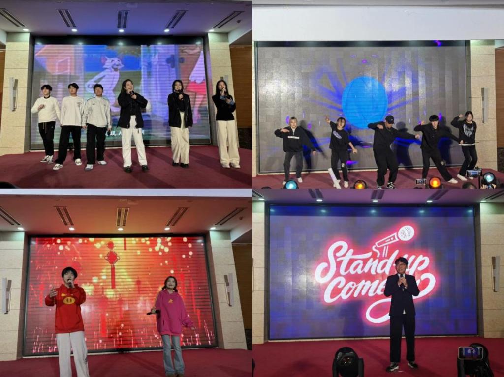 舞台上灯光璀璨,BGD舞团、《舞蹈串烧》、《APT》舞蹈轮番上演,燃爆全场,动作刚劲有力,又不失灵动飘逸;古典舞蹈《古风串烧》舞姿曼妙,如梦如幻,令人陶醉;歌曲《最初的梦想》《恭喜发财》《最长的电影》《祝我》《彩虹下面》和《小美满》等动人演唱配上温柔缱绻的歌词,走进了每一个观众的心中;小品《扰民了您》以诙谐幽默的语言和滑稽有趣的表演方式,讲述追求梦想的赤子之心,引发观众对生活真谛的思考;脱口秀《选择》以亲身经历解释人生之路的选择权掌握在自己手里,鼓励同学们坚定理想信念。除此之外,现场游戏互动环节也激发了观众的热情,大家纷纷举手抢答,积极互动,智慧与趣味交织的氛围弥漫全场,为晚会增添了无尽的活力与热情。