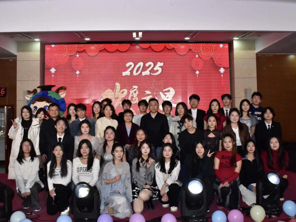 12月30日,外国语学院在第一学术报告厅成功举办2025年元旦晚会。外国语学院党委书记于江,院长宋秀葵,副院长谢士金、陈锋,党委副书记迟英娟,团总支书记牛荦,辅导员刘欣欣、王凯、吴昊,部分教师代表,2024级全体学生以及其他年级部分学生代表齐聚一堂,共同欣赏了晚会。