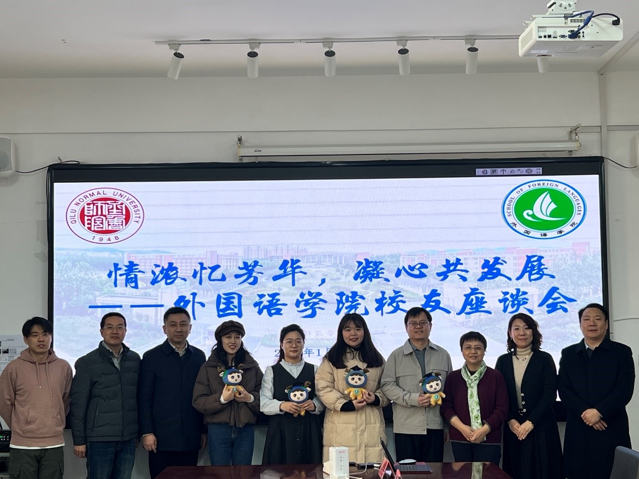 为切实做好服务校友、对接校友的工作,进一步增进学院与校友之间深厚的感情纽带,外国语学院于1月16日举办“情浓忆芳华,凝心共发展”校友座谈会。外国语学院党委书记于江,院长宋秀葵,党委副书记迟英娟,副院长谢士金、陈锋,团总支书记牛荦,教学秘书齐龙飞,辅导员吴昊,以及特邀四名杰出校友党永保、张瑞婕、葛鑫、邱琳出席本次会议。会议由于江主持。