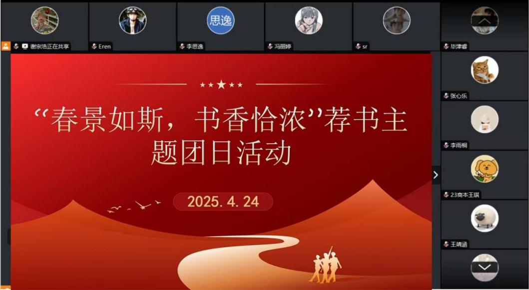 为进一步推动校园文化建设,激发全院师生的阅读热情,营造浓厚的书香氛围,提升文化素养与专业能力,外国语学院于4月24日举办“春景如斯,书香恰浓”荐书主题团日活动,本次活动采取线上线下相结合的方式,由各班团支书主持。