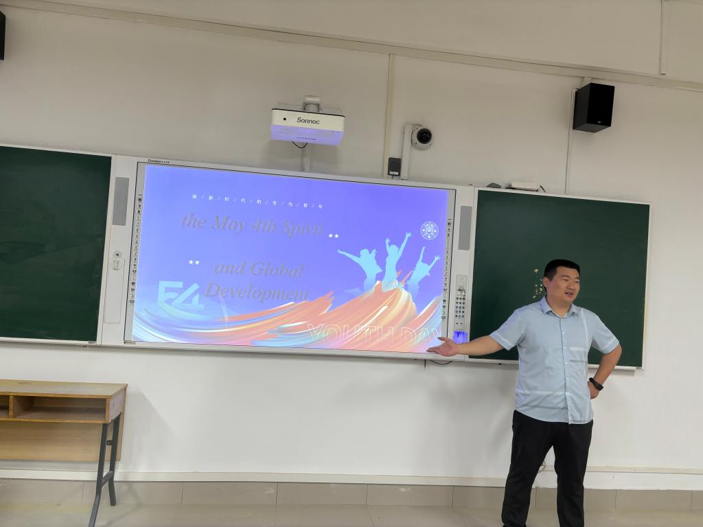 活动伊始,张宗老师用精心准备的历史图片和视频引出主题——“The May 4th Spirit and Global Development”。屏幕上,泛黄的老照片重现1919年五四运动中青年高举旗帜、呐喊游行的激昂场景,动态影像则展现五四精神在百年中的传承与发展。震撼的视听效果瞬间点燃现场热情,同学们沉浸于历史,探寻五四精神的欲望愈发强烈。